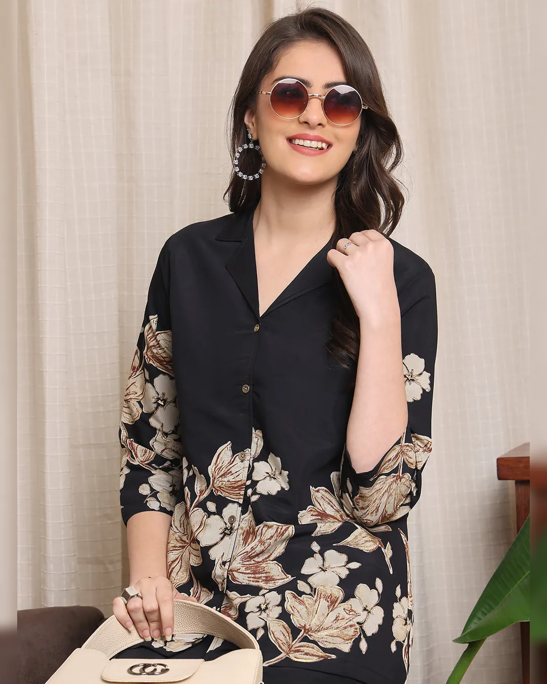 Color: Black with Beige Floral Print