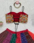 The choli complements the lehenga perfectly, adorned with Gamthi work and real mirror detailing on both front and back, giving a glamorous, show-stopping appeal. Both pieces are fully stitched and ready-to-wear, ensuring a perfect fit for sizes up to 44 (lehenga) and 42 (choli).