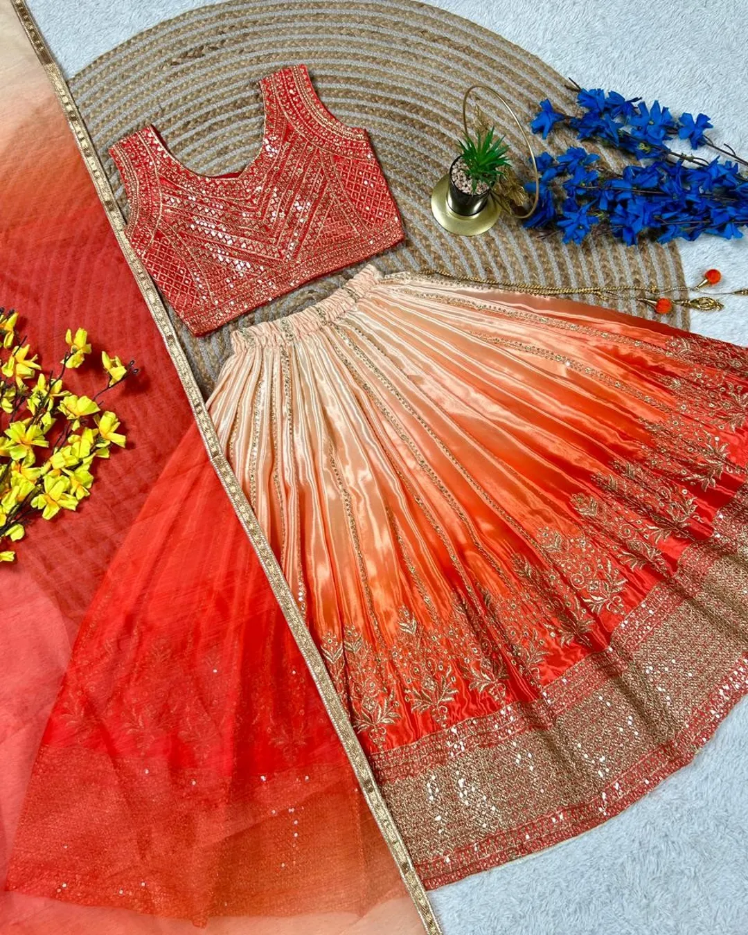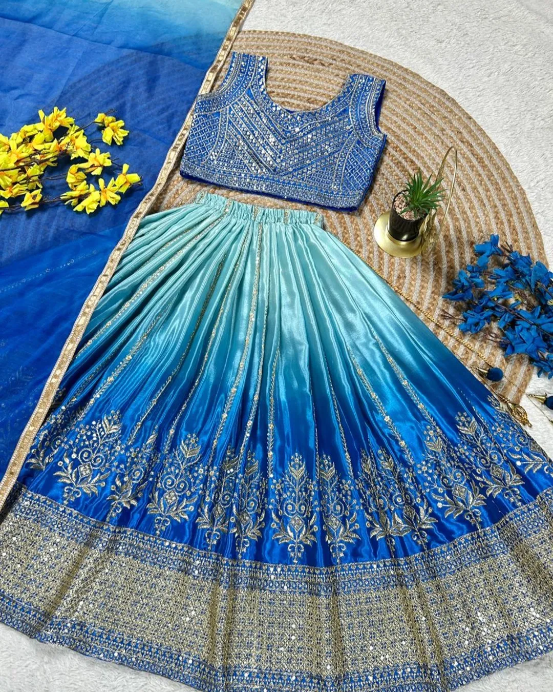Step into elegance with this new designer Lehenga Set, beautifully crafted to give you a graceful and modern ethnic look. Made from soft chinon silk fabric, this outfit offers a lightweight feel with a luxurious finish.