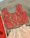 The blouse features intricate sequins embroidery work and comes with a zip closure, ensuring both style and convenience. The lehenga is adorned with sequins embroidery along with print work, creating a perfect blend of traditional charm and contemporary design.