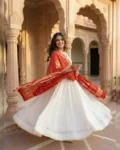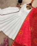 Step into elegance with this stunning designer 3-piece set crafted in premium Roman Silk. The gown features a full flare with a delicate lace border, full sleeves, and a heavy micro cotton inner for comfort. Paired with a matching Roman Silk pant and a digitally printed Maslin dupatta with lace border, this outfit is perfect for festive occasions, weddings, and parties. Fully stitched and ready to wear, it combines luxury, style, and convenience.