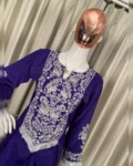 French crepe embroidered long top with stylish dhoti — a designer western-ethnic fusion outfit for parties and weddings.