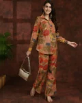 Elevate your ethnic wardrobe with our Earthy Elegance Co-ord Set, a captivating ensemble designed to exude timeless charm and sophistication. Crafted from luxurious Chanderi Silk, this set features a Brown & Maroon Printed Shirt paired with matching Mid-Rise Trousers, perfect for any ethnic occasion. The shirt boasts a classic Shirt Collar, Full Sleeves, and a full placket button closure, exuding refined elegance and sophistication. Complementing the shirt, the trousers offer a comfortable fit with a Partially Elasticated Waistband, 2 Side Pockets, and a flattering flared hem, ensuring both style and comfort. Adorned with an abstract print in hues of brown and maroon, this ensemble radiates earthy charm and understated elegance. Whether you're attending a festive celebration or a cultural event, the Earthy Elegance Co-ord Set will ensure you stand out with effortless grace and style.