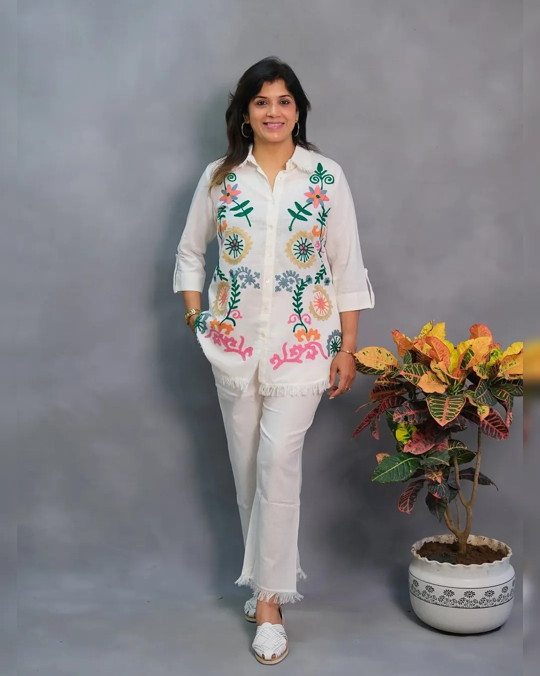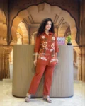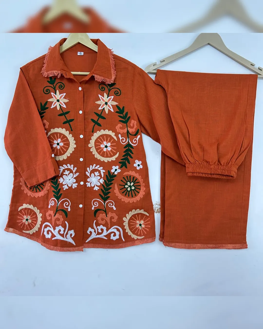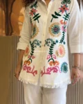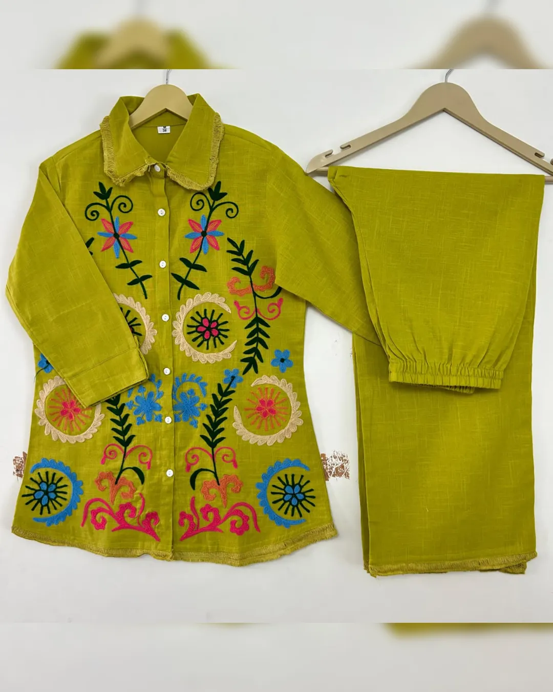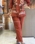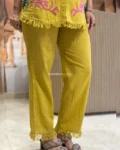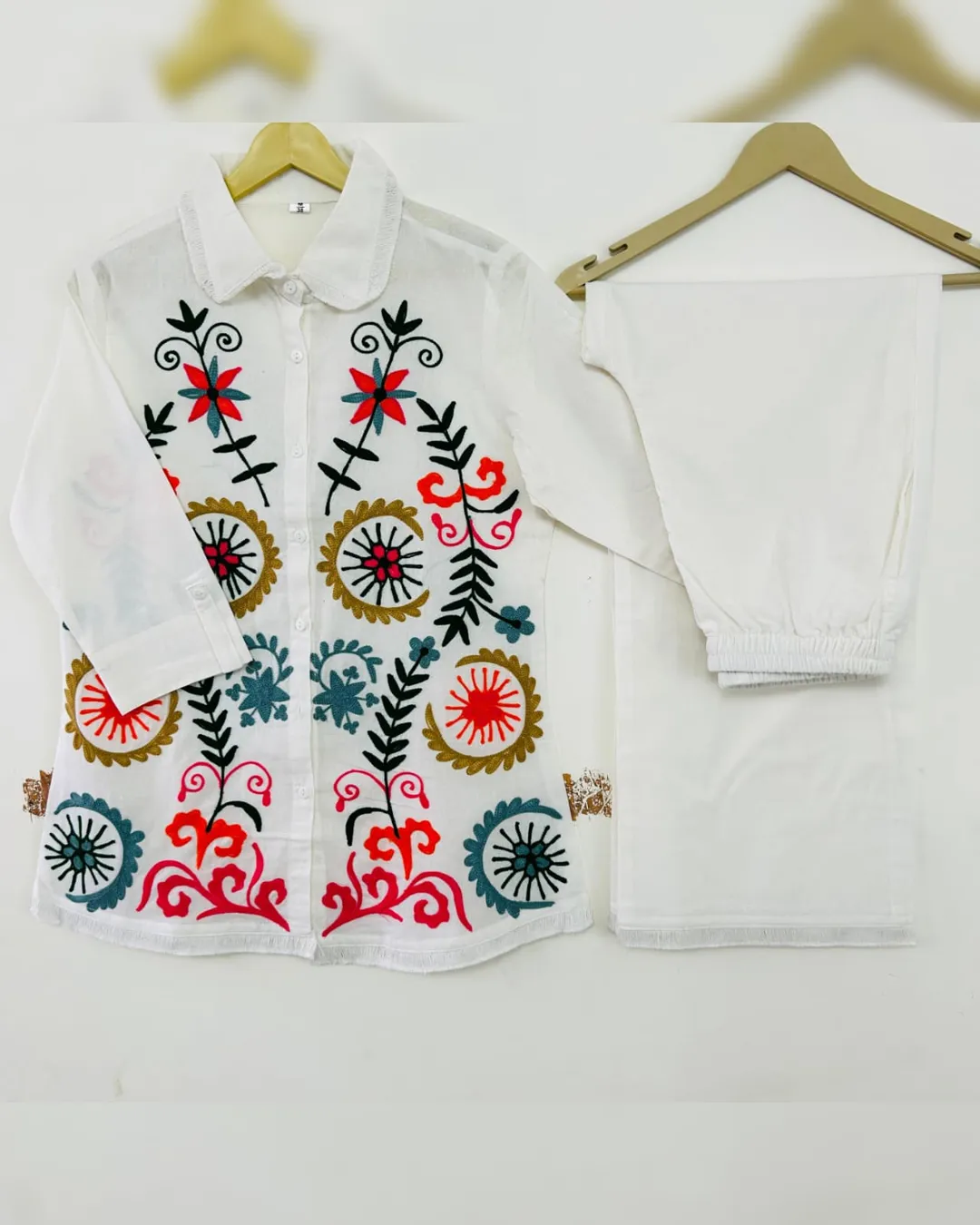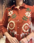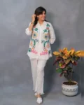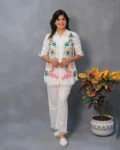 Look stylish and feel confident every day with our newly launched cotton embroidered co-ord set, tailored for comfort and charm. This elegant ensemble features a beautifully embroidered top with heavy aari work, paired with a matching pant with a pocket, making it the perfect addition to your office, daily wear, or kitty party wardrobe.