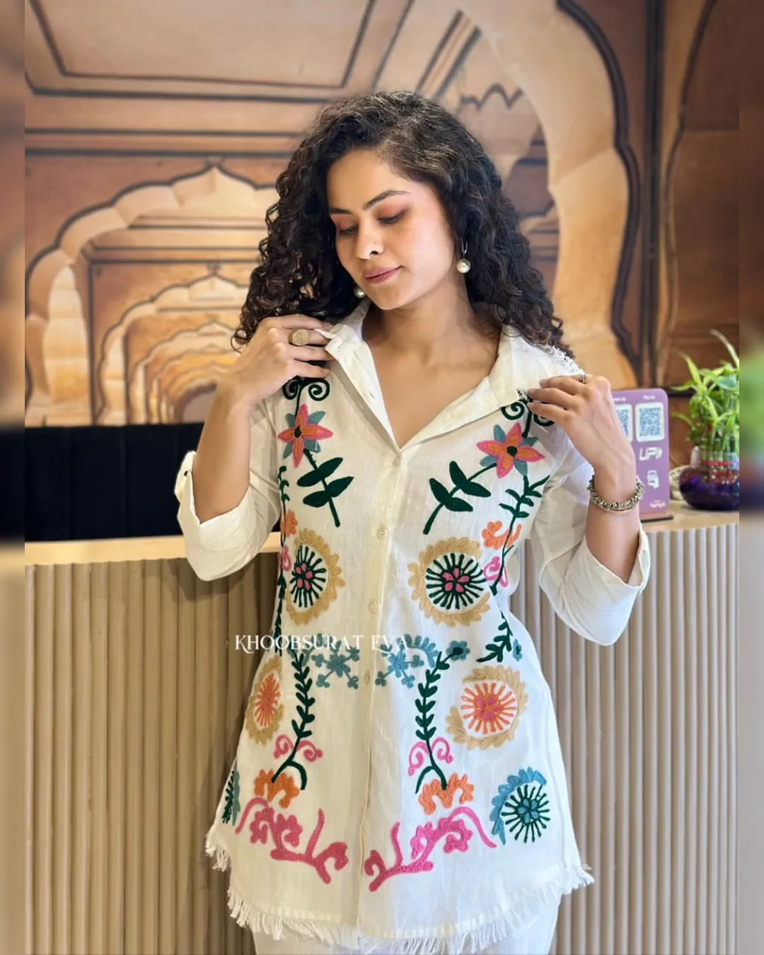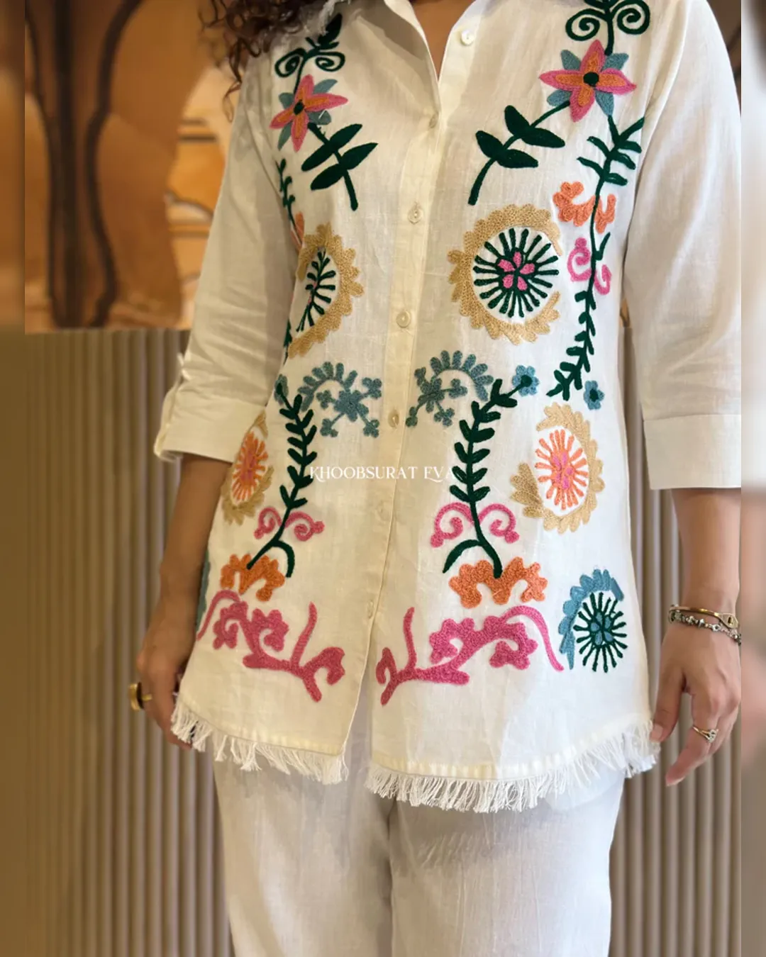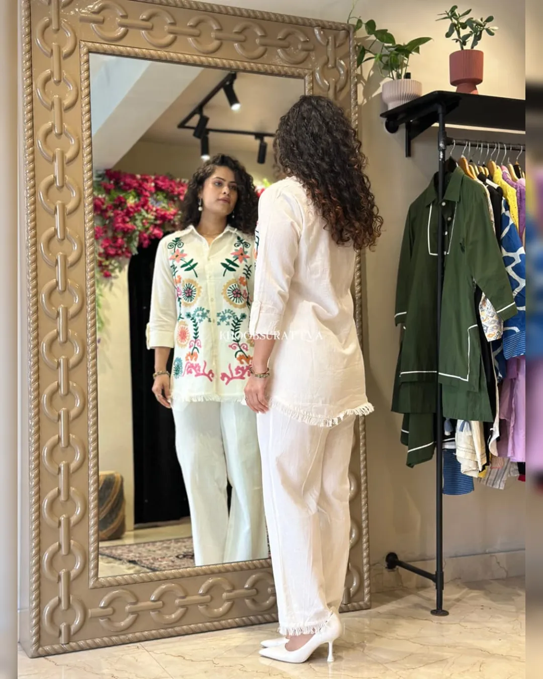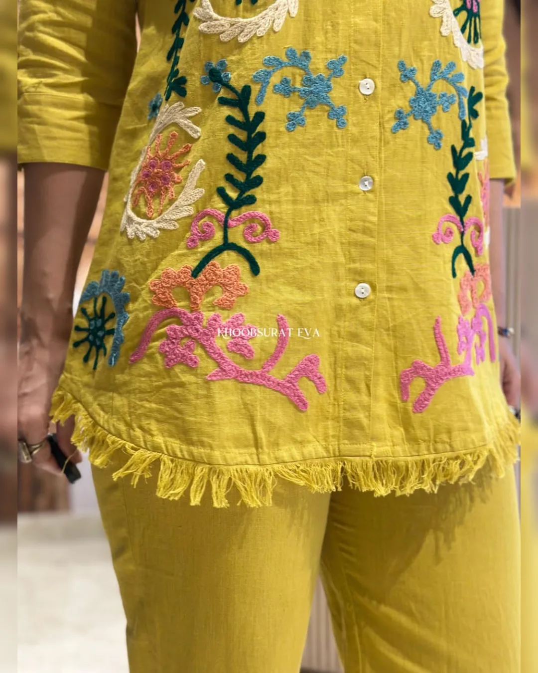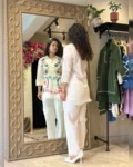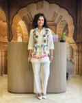Look stylish and feel confident every day with our newly launched cotton embroidered co-ord set, tailored for comfort and charm. This elegant ensemble features a beautifully embroidered top with heavy aari work, paired with a matching pant with a pocket, making it the perfect addition to your office, daily wear, or kitty party wardrobe.