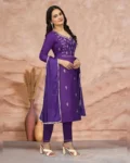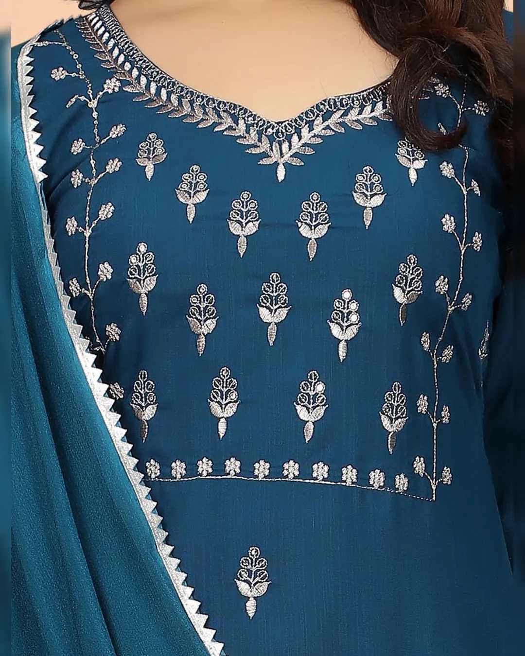 Elegant Cotton Blend Embroidered Kurti Set with silk dupatta, perfect for festive, party, and ethnic occasions.