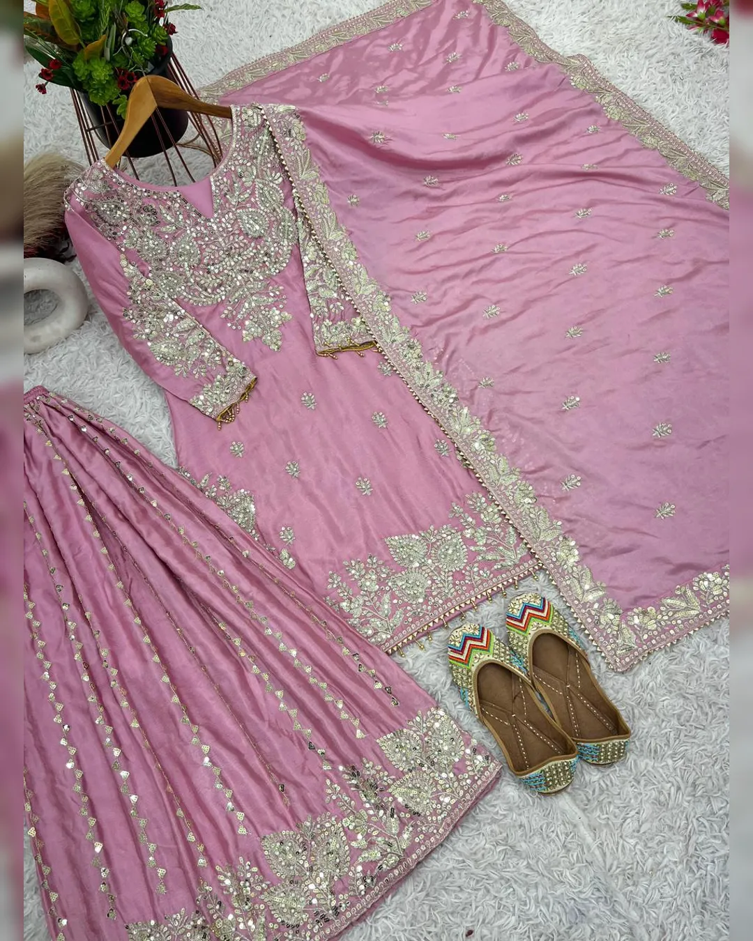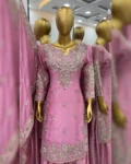 Heavy Embroidery Sequence Work Top-Gharara & Dupatta Set, designed for the modern fashionista. This premium set is made from