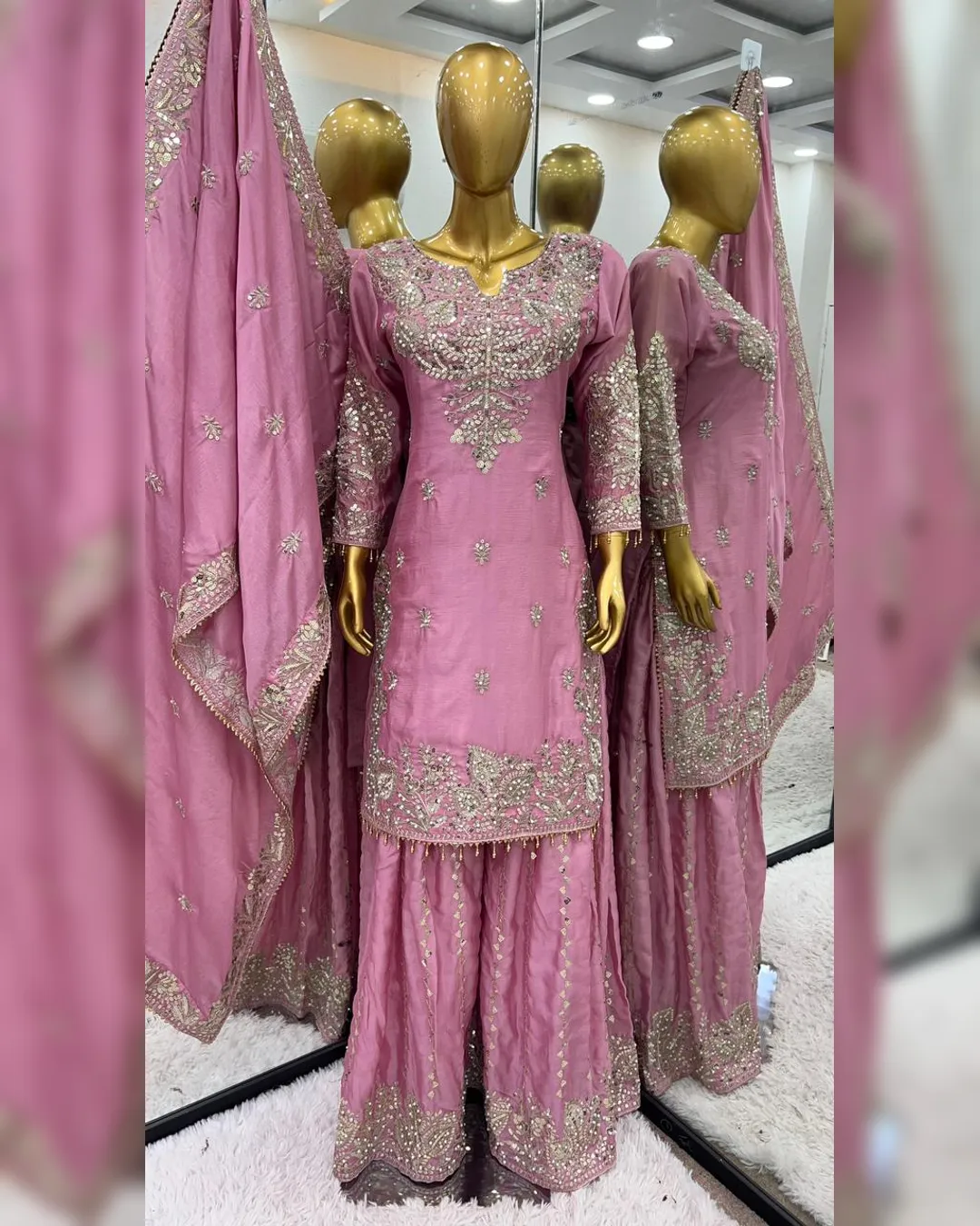 Gharara, with its intricate embroidery, flows gracefully, giving you a regal appearance. The