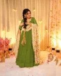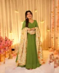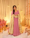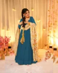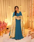 This fully stitched ready-to-wear gown set is available in a wide range of sizes, making it suitable for all body types. Perfect for festivals, weddings, ceremonial events, functions, and party wear, this outfit will make you stand out effortlessly.
