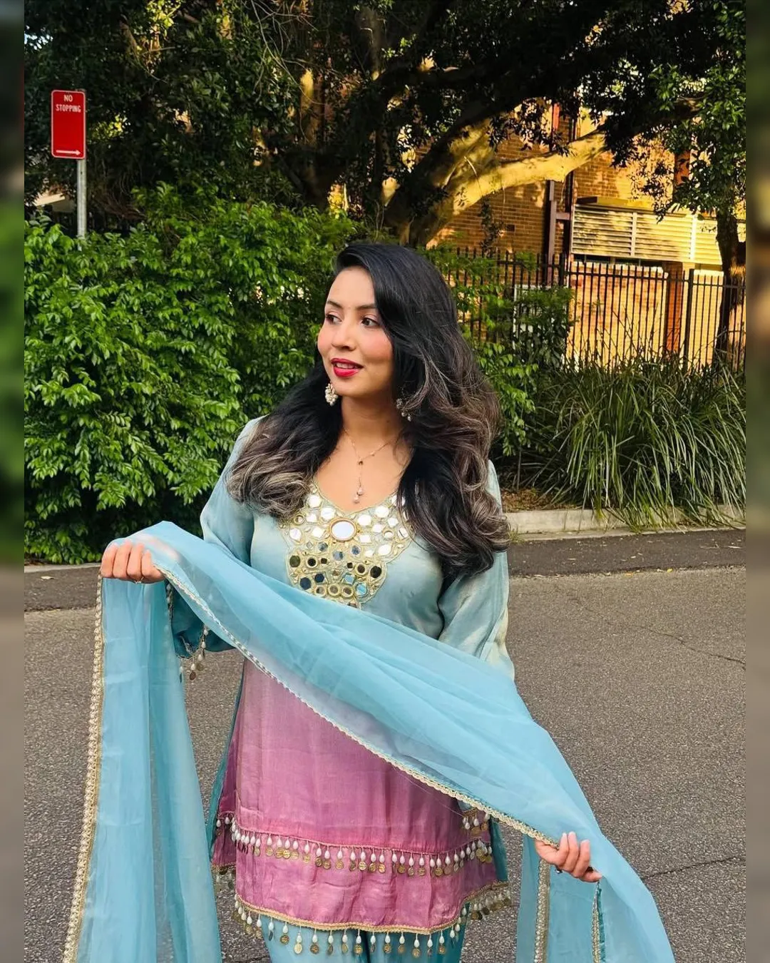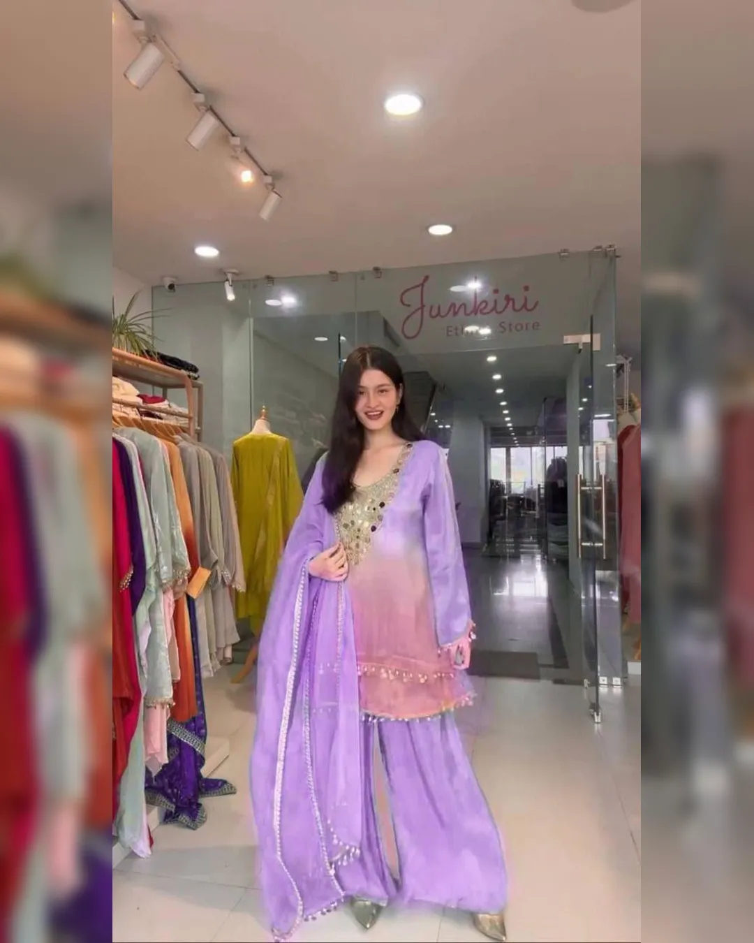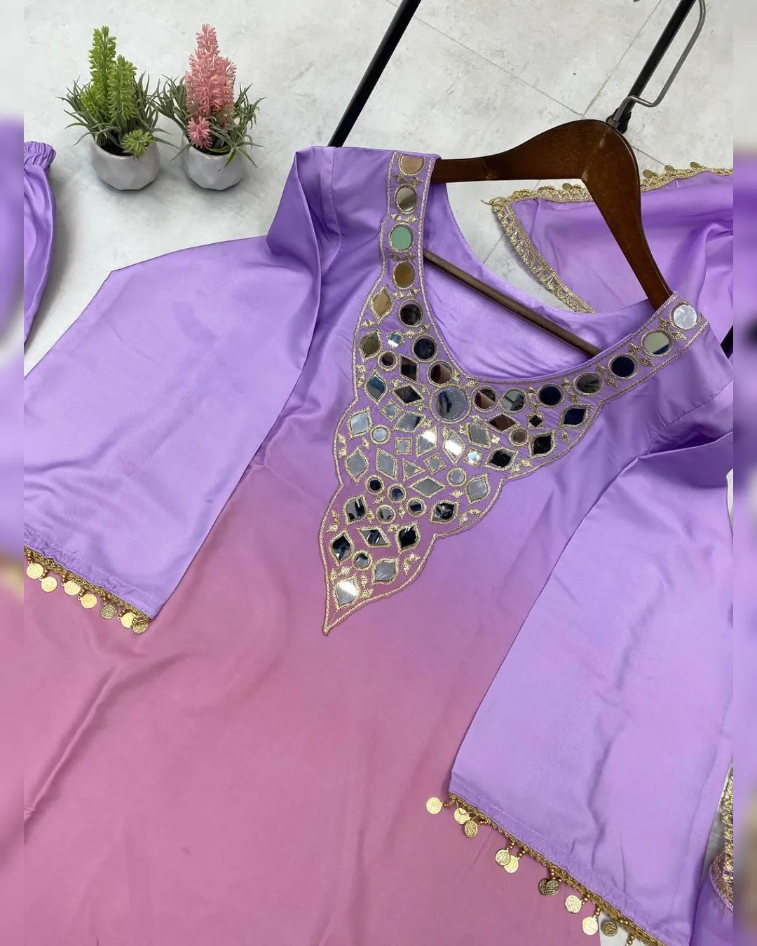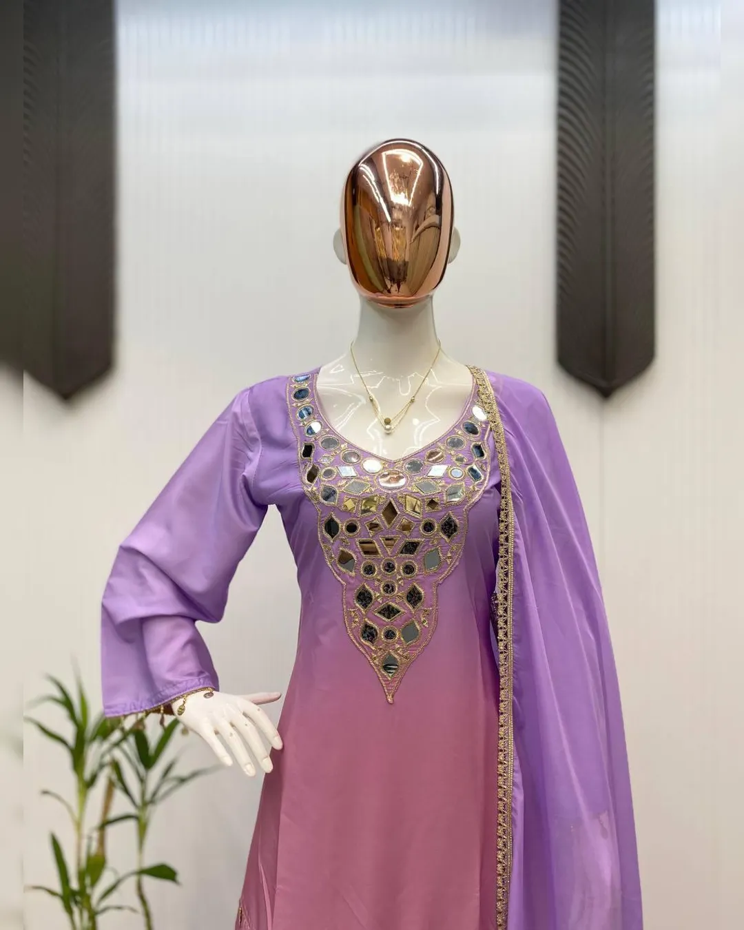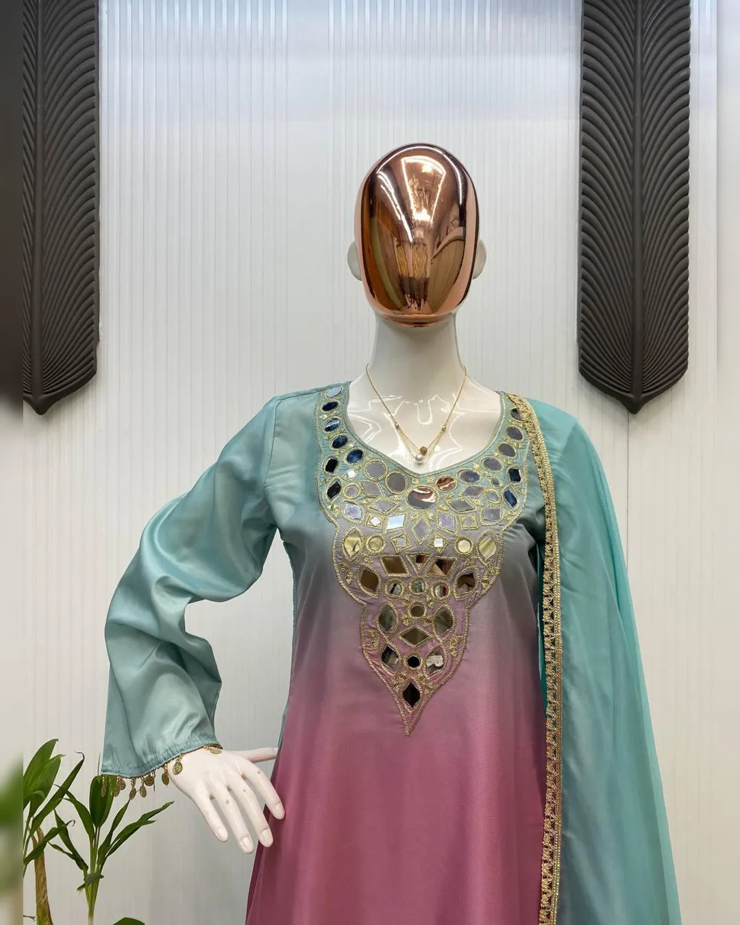 Step into effortless elegance with this exclusive 3-piece plazzo set, designed to blend comfort with festive charm. Crafted in premium printed crepe silk, the set features a beautifully embroidered and mirror-work top paired with a flowy plazzo and a soft printed organza dupatta. Perfect for festive occasions, casual celebrations, and elegant day wear, this outfit offers a flattering fit with a lightweight feel, making it a must-have addition to your ethnic wardrobe.