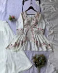 Make a striking statement this wedding season with our exclusive and trendy Top-Plazzo-Dupatta set crafted in luxurious Rangoli Silk. Designed to blend elegance with comfort, this ensemble features beautiful sequins embroidery that adds the perfect festive sparkle. Fully stitched and ready to wear, it’s an ideal choice for weddings, festive gatherings, and special occasions. The rich fabric, flattering fit, and coordinated dupatta make this set a must-have for your ethnic wardrobe.