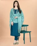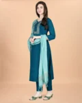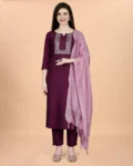 Elegant Cotton Blend Embroidered Kurta Set with matching pants and Chanderi dupatta, ideal for festivals, work, and special occasions.