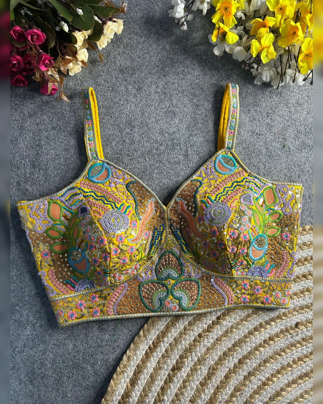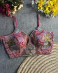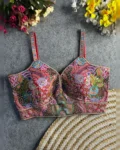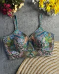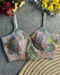 The back open style adds a touch of bold sophistication, while the heavy padding and intricate finishing make it a perfect companion for lehengas, sarees, and festive wear. Designed with high-quality tailoring and detailing, this blouse is ideal for weddings, Navratri nights, and grand celebrations.