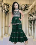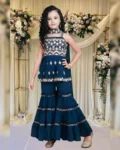 Stylish sleeveless kurta sharara set with embroidery, perfect for girls aged 7–14 years. Comes with a matching embroidered dupatta for a complete festive look.