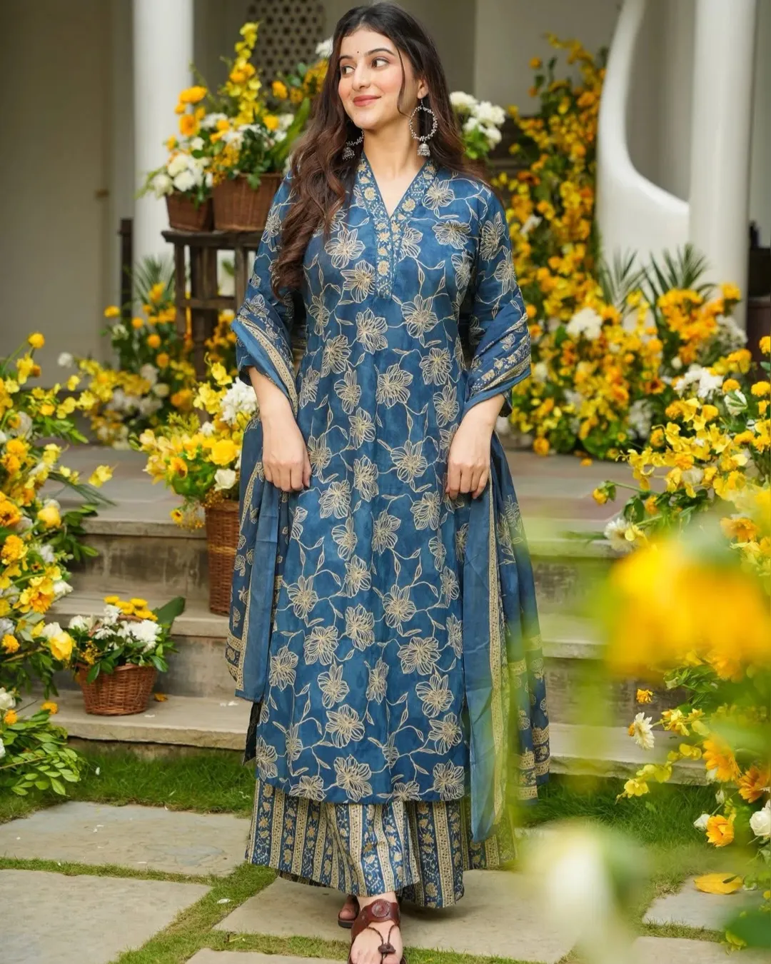 Enhance your everyday ethnic style with this beautiful straight-style Kurti, Bottom and Dupatta set, designed with elegant heavy digital prints for a graceful look. Made from premium heavy muslin fabric, the outfit provides both comfort and a rich appearance.