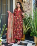 Stylish straight-cut kurti set crafted from heavy muslin with elegant digital prints. Paired with matching bottom and dupatta, this fully stitched 3-piece set offers comfort and modern ethnic style for daily and casual wear.
