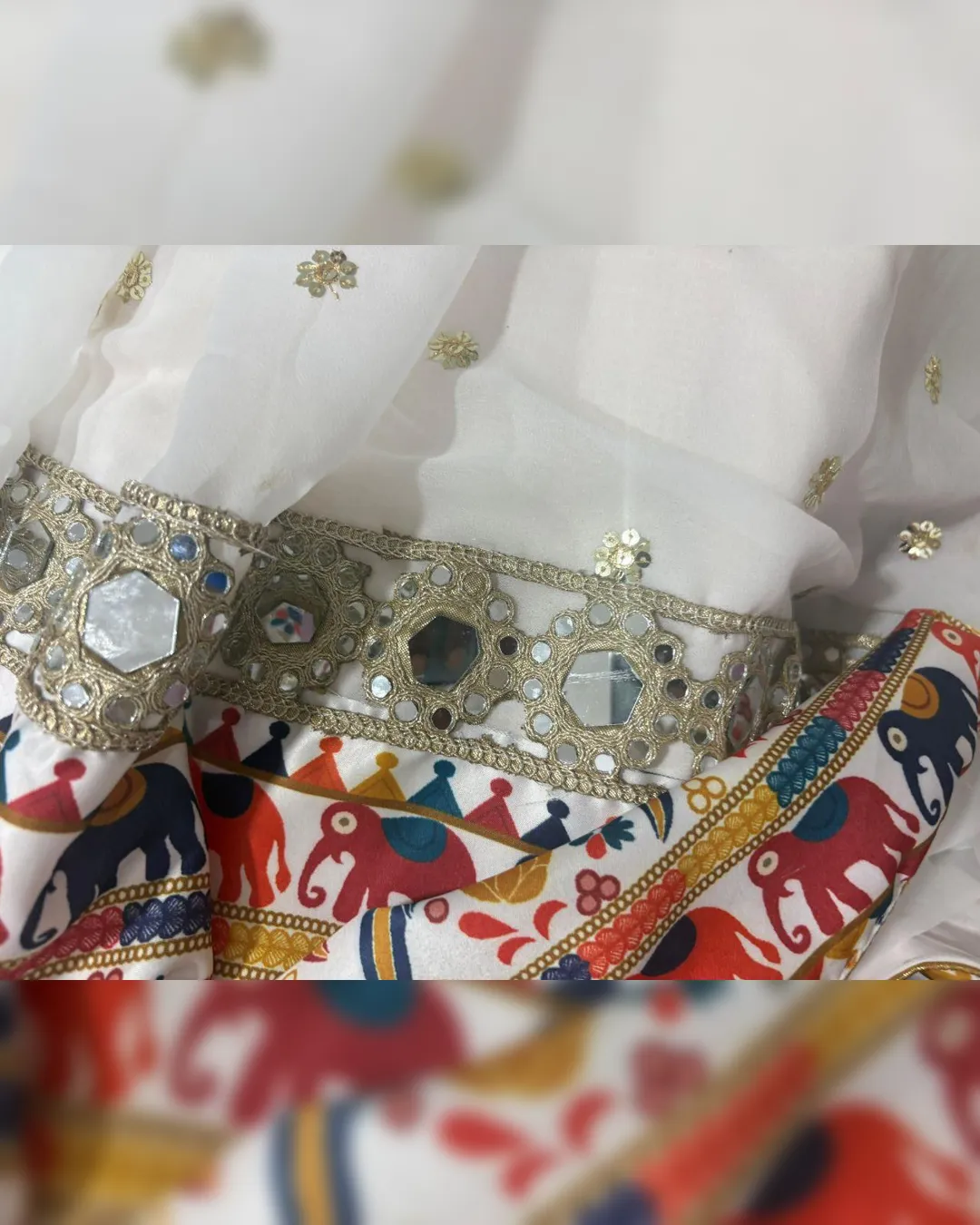 Work: Heavy Sequins Embellishment with Digital Print and Real Mirror Work