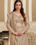 Paired with a heavy mono net stitched blouse embellished with beads and sequins work, this ready-to-wear lehenga saree delivers effortless elegance with a couture touch. Perfect for weddings, receptions, festive gatherings, and party nights β designed for women who love bold and glamorous ethnic fashion.