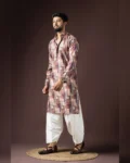 Introducing our New Festive Wear Men’s Kurta with Bottom Collection – Baarati Vol 06, designed to bring together traditional elegance and modern comfort. The kurta is crafted from premium blended cotton with fine woven detailing, offering a rich yet breathable feel. Paired with an art silk bottom, this ensemble delivers a refined festive look perfect for weddings, baarat functions, and cultural celebrations. A versatile outfit that blends style, comfort, and classic ethnic charm.