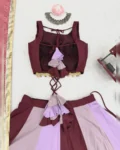 Navratri Special heavy rayon lehenga choli set with real mirror and Gamthi thread work. Comes fully stitched with padded blouse, tassel straps, and digitally printed dupatta. Perfect festive flair with a 4-meter grand lehenga.