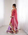 The blouse is fully stitched, padded, and comes with tassel-detailed straps, while the lehenga offers a grand 4-meter flair with canvas patta for an elegant silhouette. The look is completed with a beautiful faux georgette dupatta, digitally printed and enhanced with Gamthi thread work for a standout appearance.