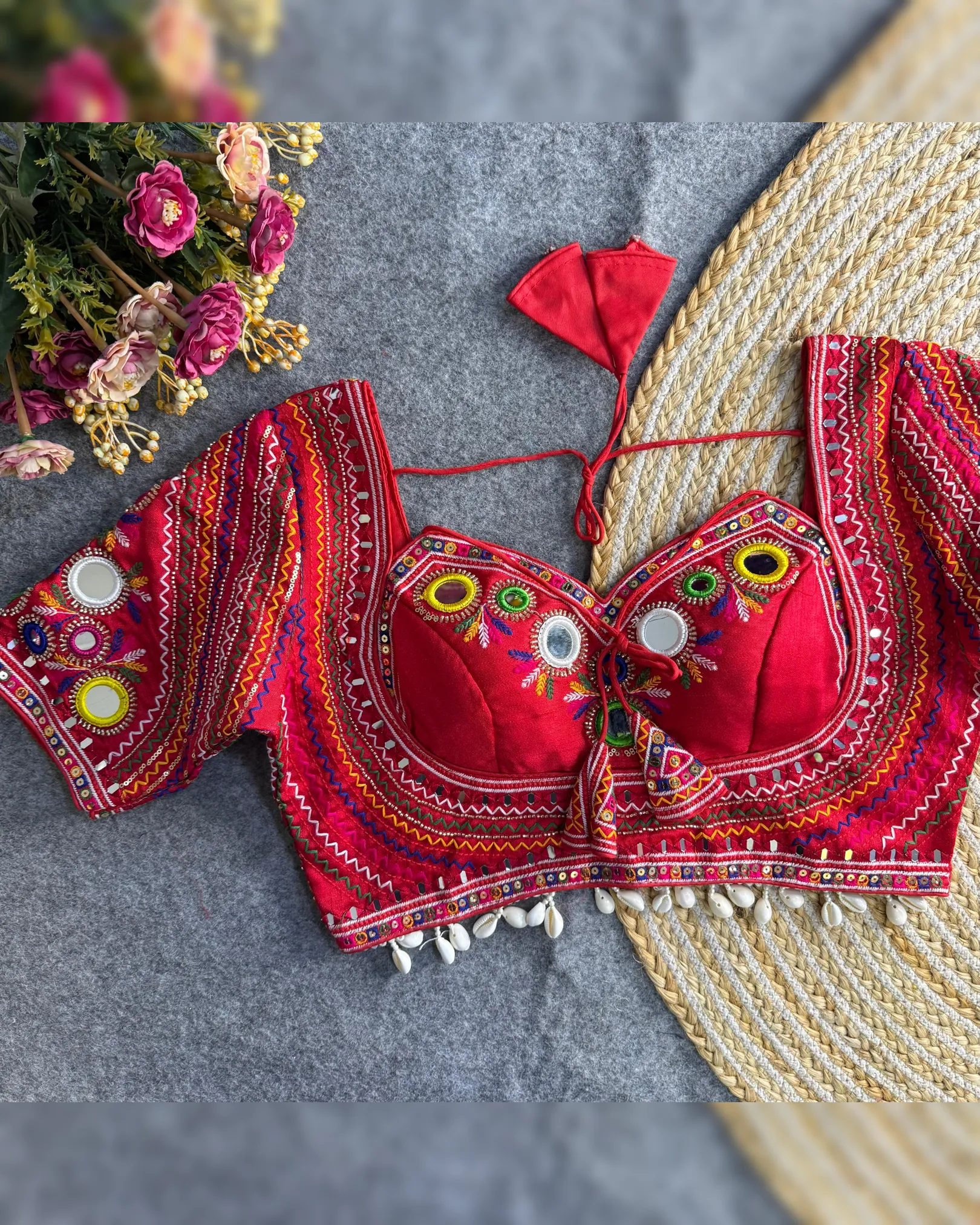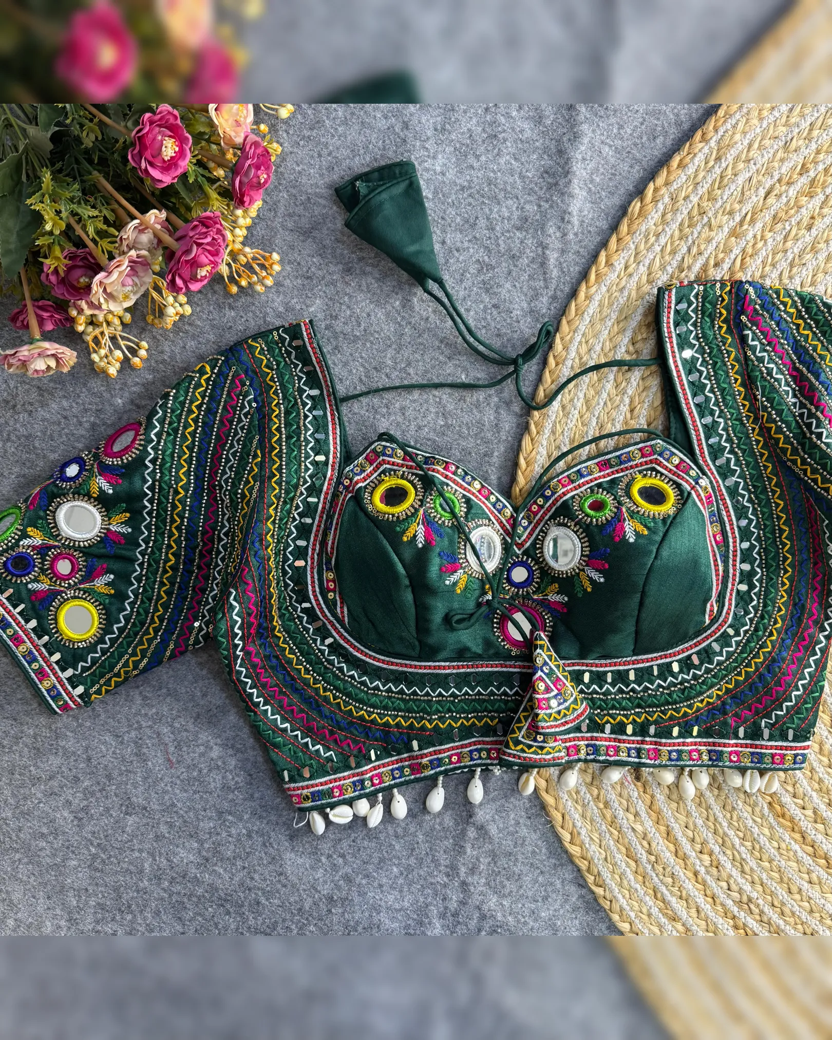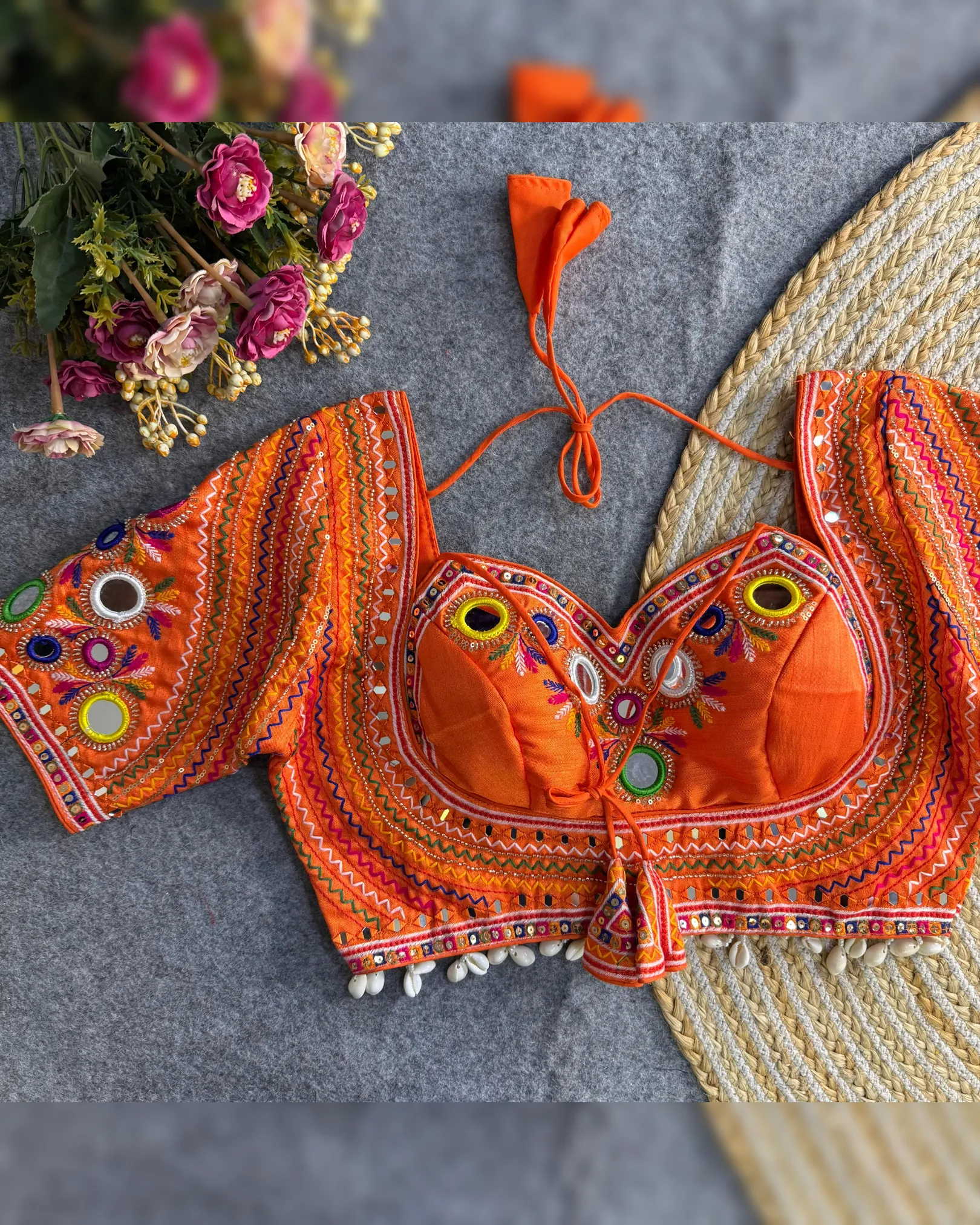 Celebrate this Navratri with bold style and traditional flair! Presenting our Newly Launched Masaba-Inspired Designer Blouse crafted in Heavy Italian Silk with intricate Real Multi Mirror Work and Hand Embroidery.
