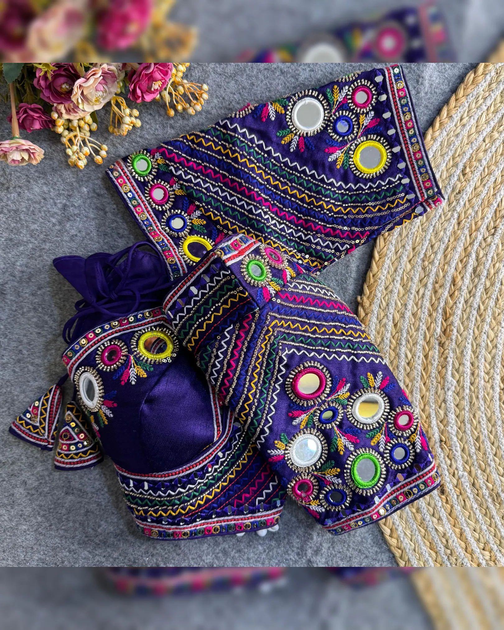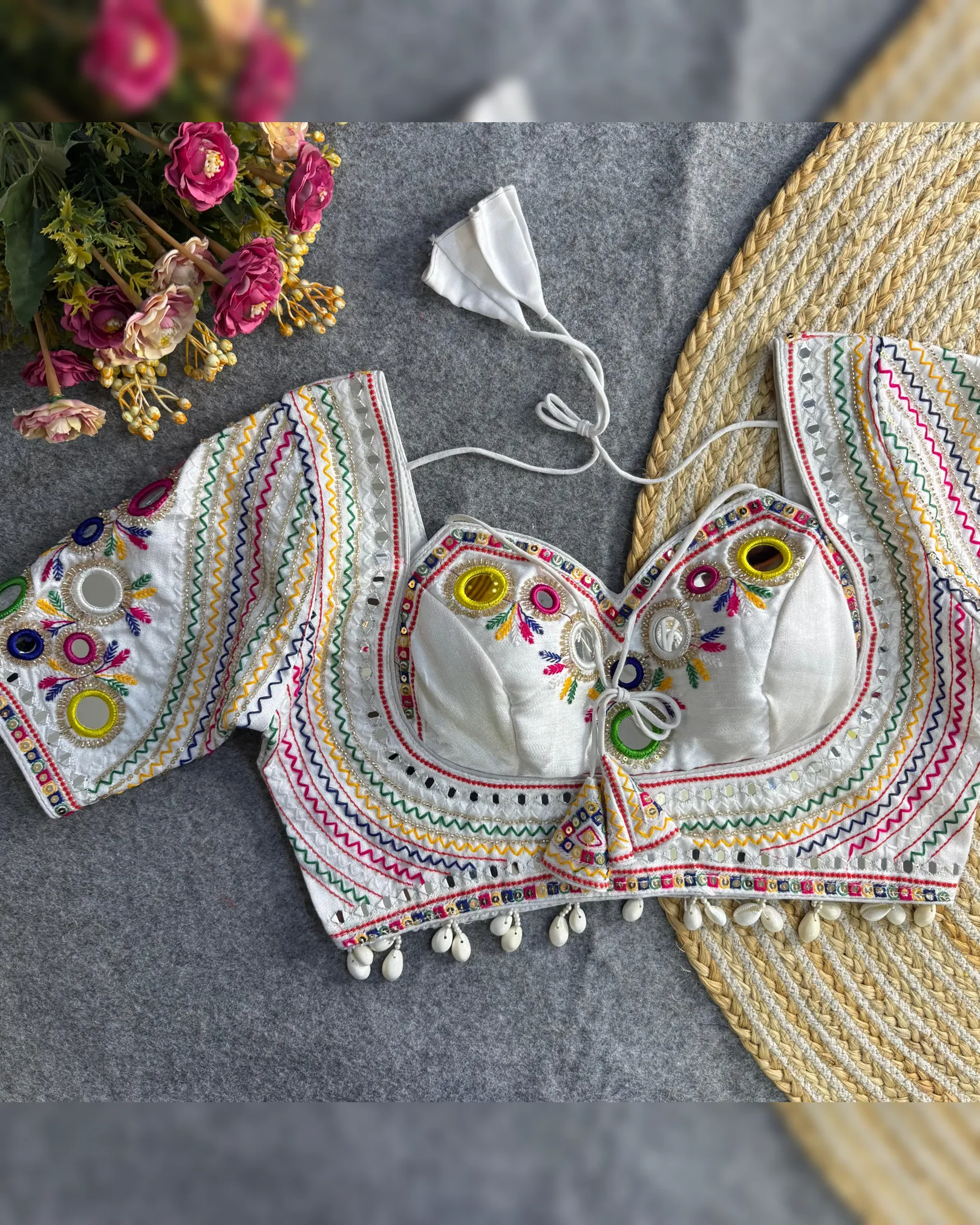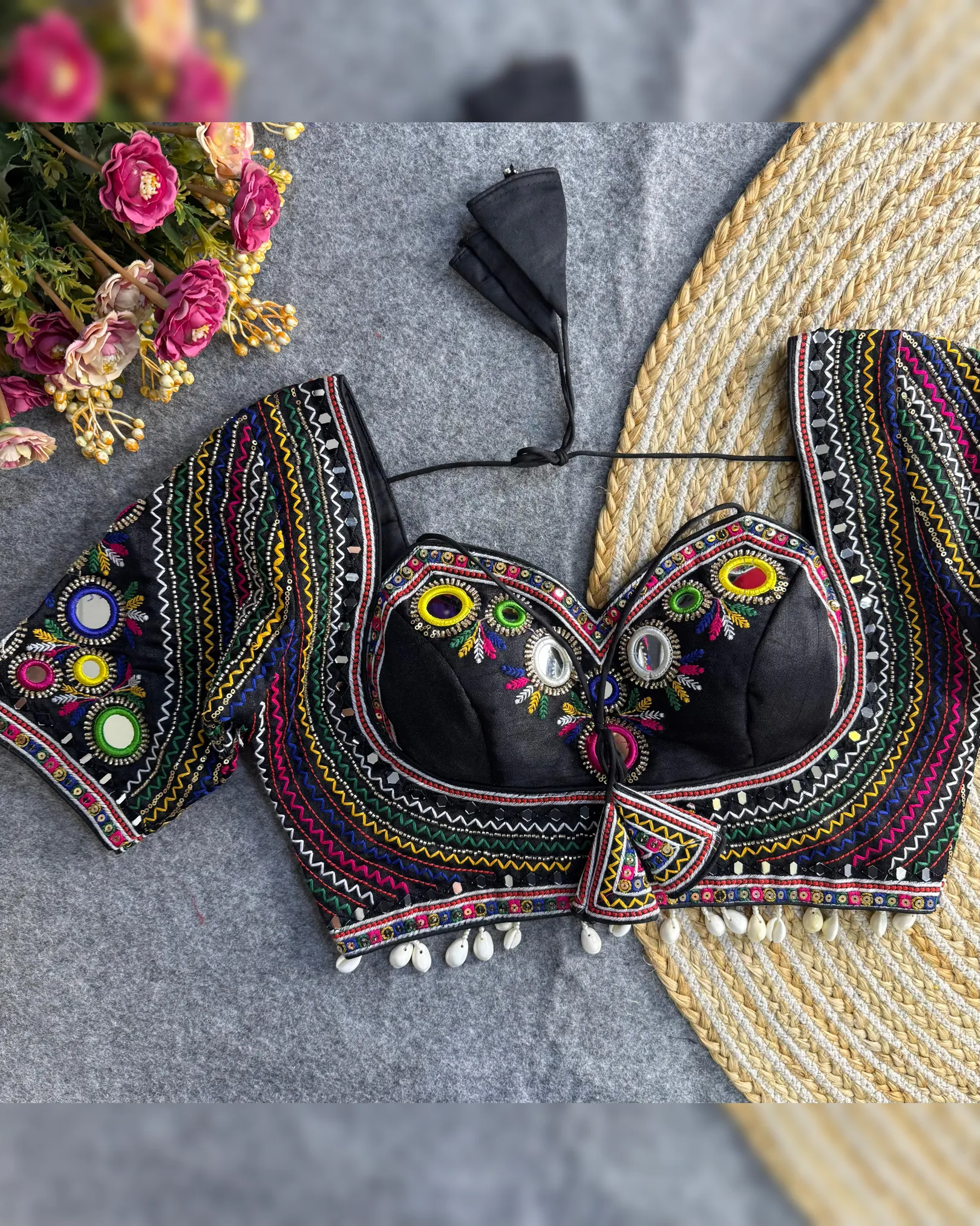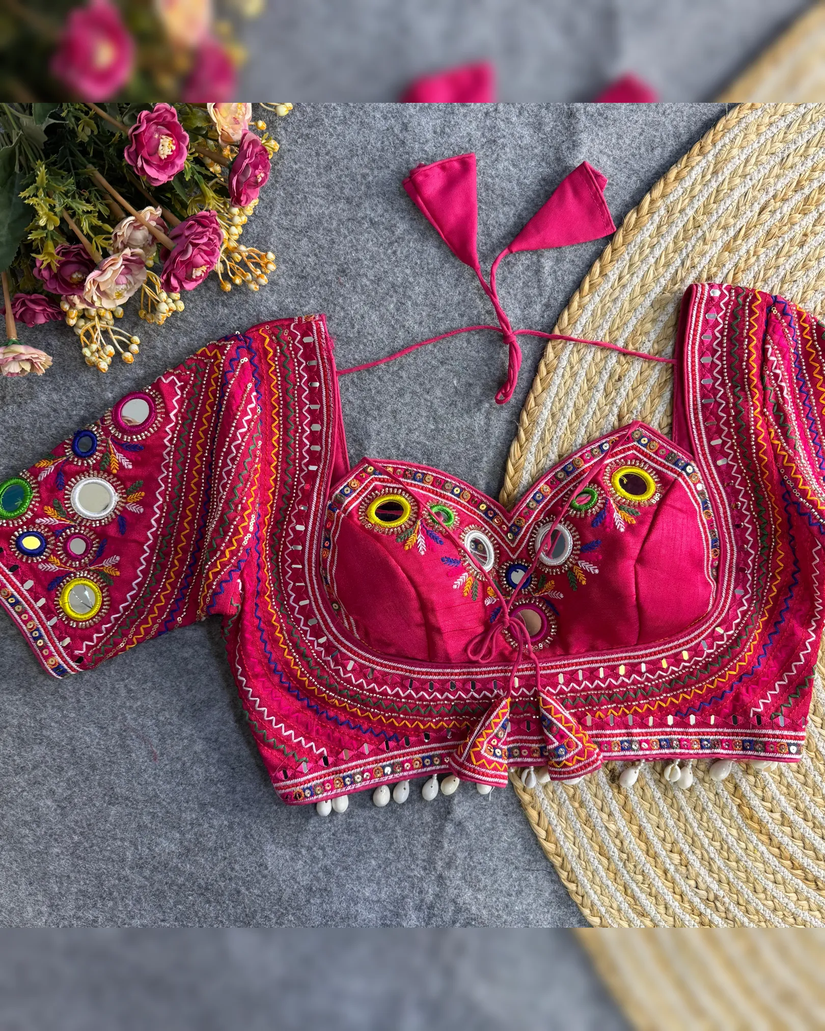 Celebrate this Navratri with bold style and traditional flair! Presenting our Newly Launched Masaba-Inspired Designer Blouse crafted in Heavy Italian Silk with intricate Real Multi Mirror Work and Hand Embroidery.