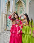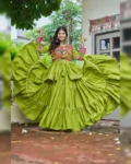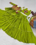 Celebrate the festival of colors and dance in style with this Navratri Special Pure Cotton Lehenga Choli Set. Featuring intricate Gamthi and ribbon lace work, this set is designed to make every twirl look graceful. The lightweight cotton fabric ensures comfort for all-night celebrations, while the fully stitched pieces make it ready-to-wear for a perfect festive look.