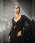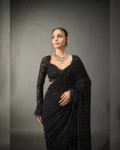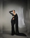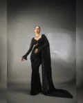 Step into the spotlight with this latest Bollywood blockbuster inspired saree, crafted in premium heavy-quality faux georgette and designed to deliver unmatched glamour. The saree features a stunning heavy C-pallu embroidery design adorned with 5mm sequins and multi-embroidery work, making it perfect for grand celebrations and evening events.
