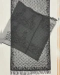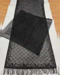 With 4.4 meters of detailed embroidery work across the saree, this outfit offers rich craftsmanship and a luxurious drape. The look is beautifully completed with decorative latkan (zalar) attachments on the pallu and blouse, adding a graceful designer touch.