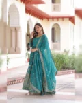 Make a glamorous statement at every celebration with this Party Wear Silver Crunchy Gown Set, designed to shine with rich sequins embroidery work. Crafted in premium silver crunchy fabric, this elegant gown features a graceful flair, full sleeves, and a comfortable cotton lining for all-day ease. Paired with a beautifully embroidered dupatta with designer lace border, this outfit is perfect for parties, receptions, weddings, and festive evenings.