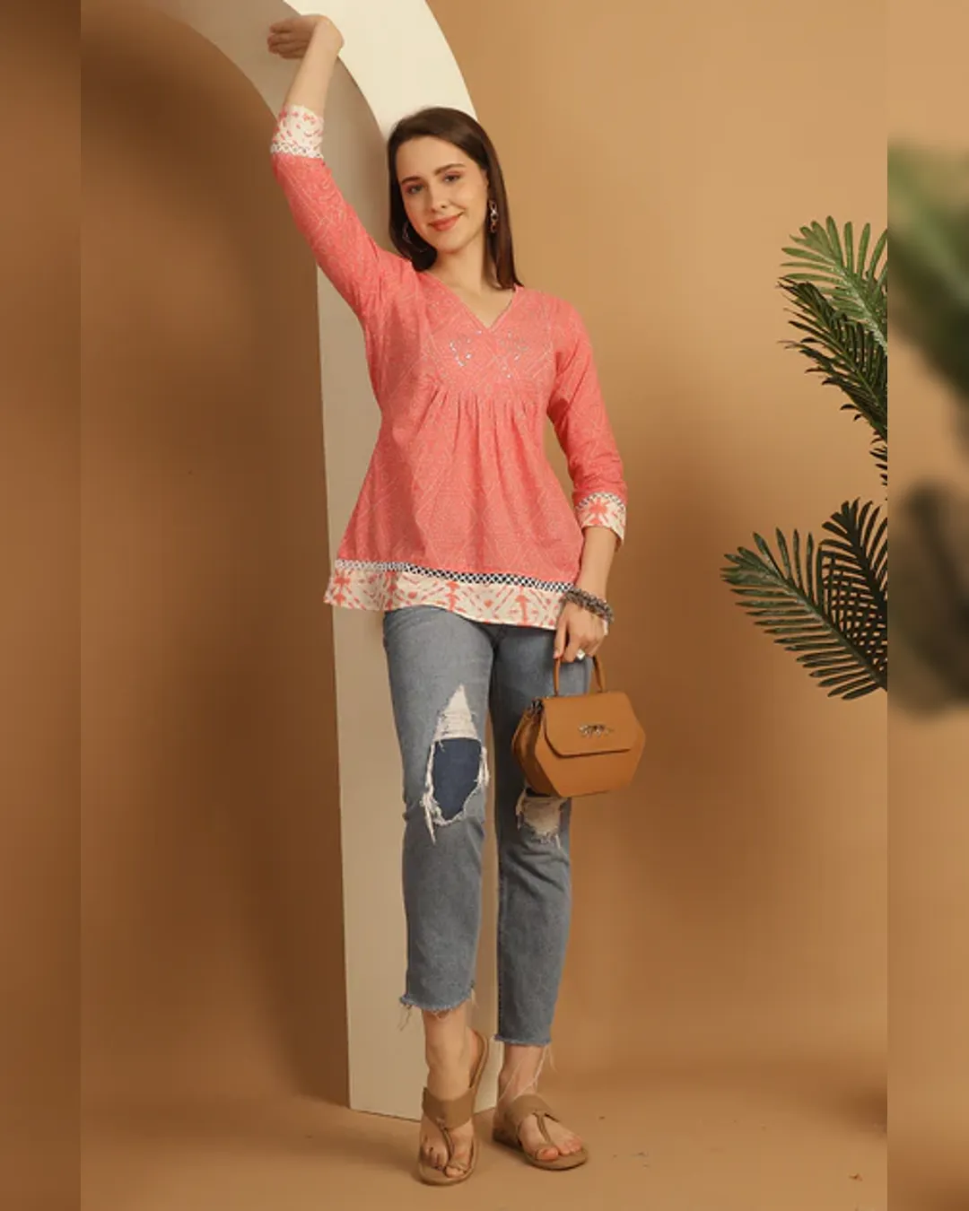 Elevate your casual style with this Slim Fit Cotton Short Kurti, designed to pair effortlessly with denim jeans or trousers. Crafted from breathable cotton and adorned with subtle thread work, this 29-inch kurti offers both comfort and elegance, making it ideal for office hours, college days, or casual outings.