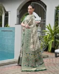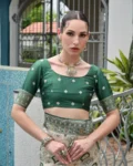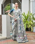 Paired with a contrast blouse piece, this saree is ideal for festive occasions, weddings, and cultural celebrations, offering a timeless and sophisticated look.