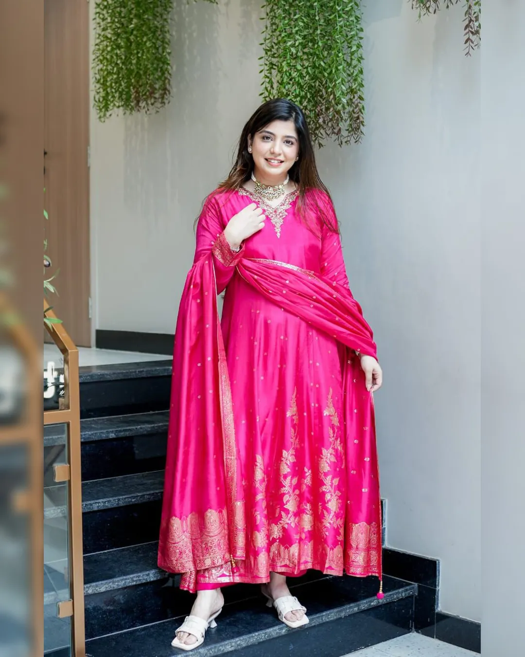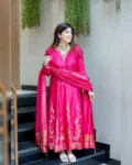 This fully readymade Anarkali set blends traditional craftsmanship with modern style, making it an ideal choice for special occasions where elegance truly matters.