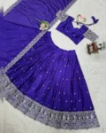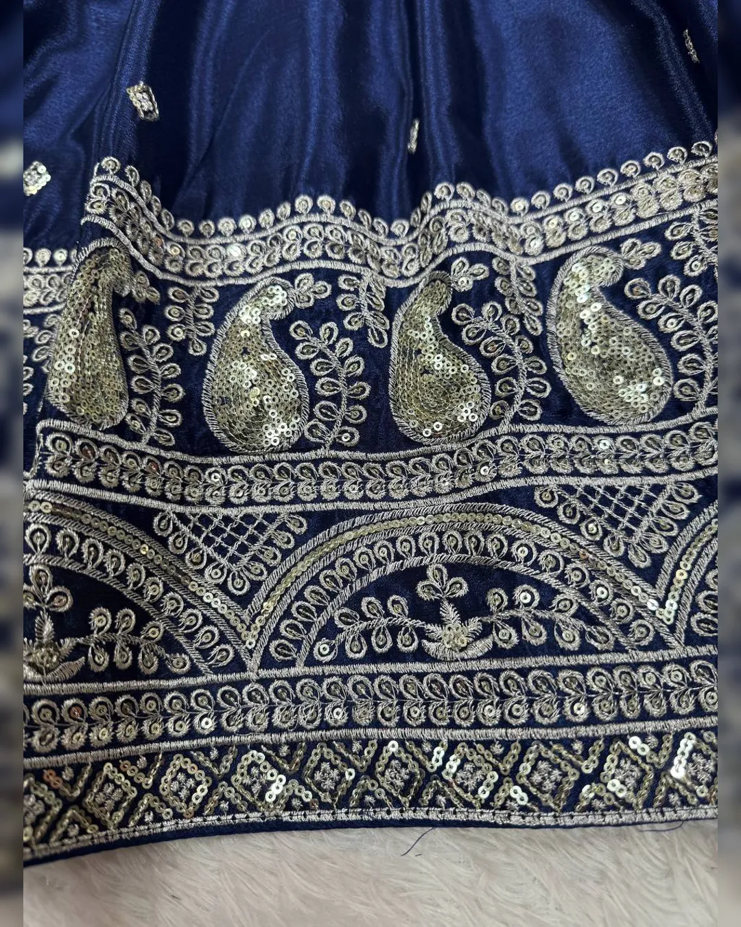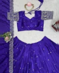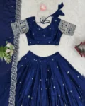 Make a dazzling statement with this Premium Chinon Silk Lehenga Choli Set, beautifully crafted for wedding and festive celebrations. The full-stitched lehenga features rich thread and sequence embroidery with a grand 3-meter flair enhanced by canvas patta and cancan, giving it a royal and voluminous look.