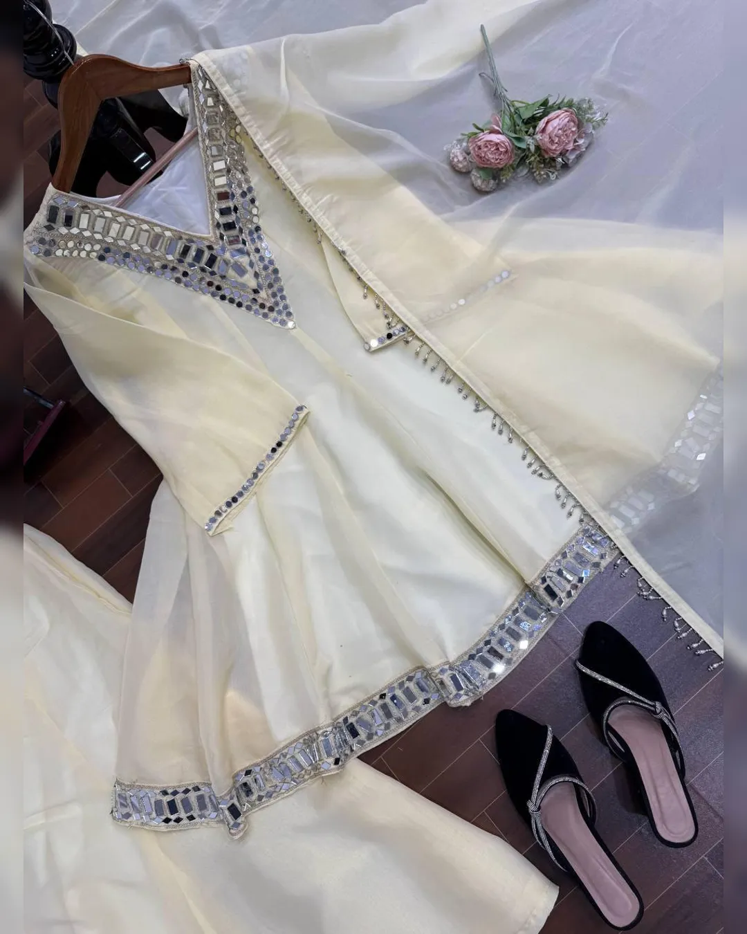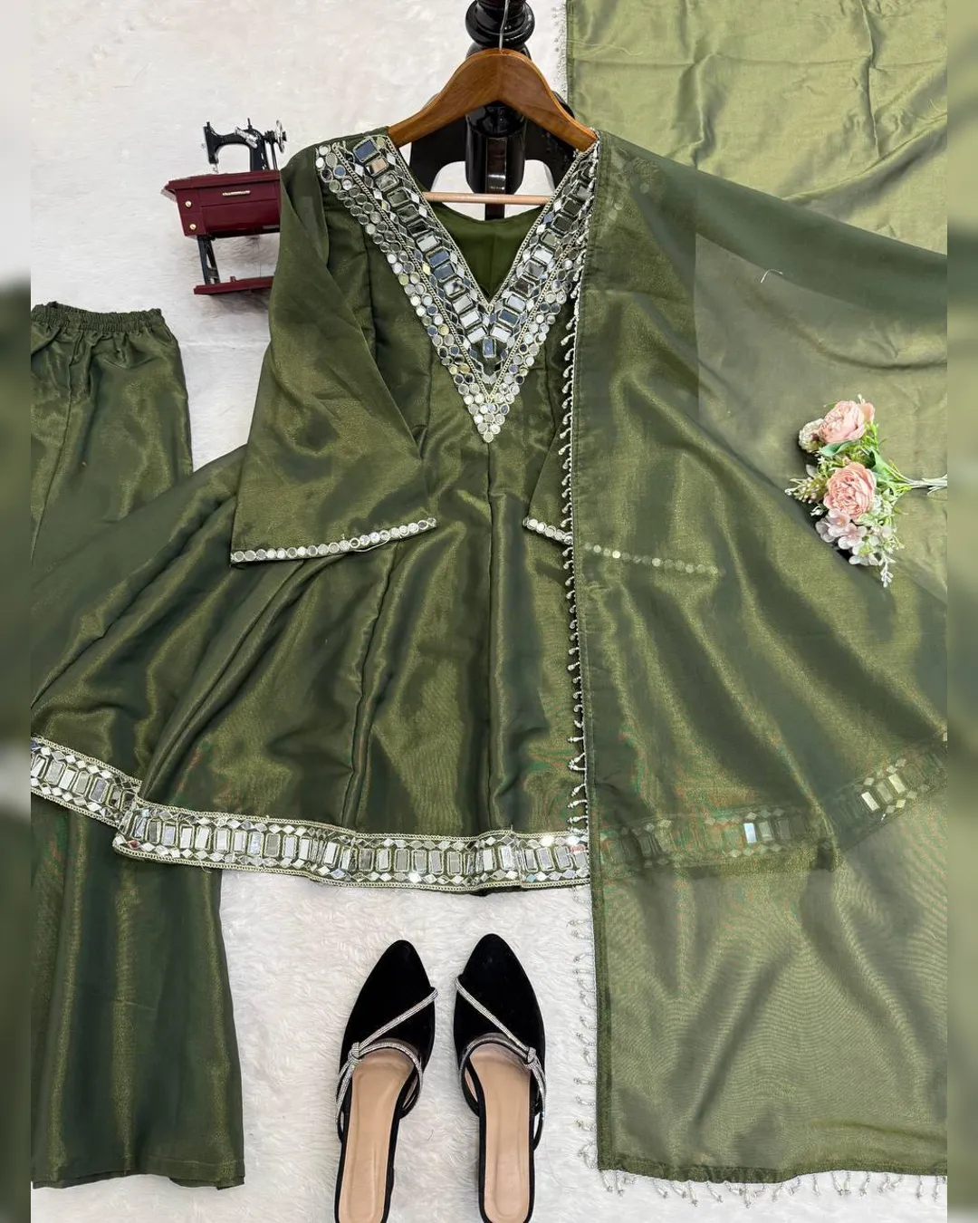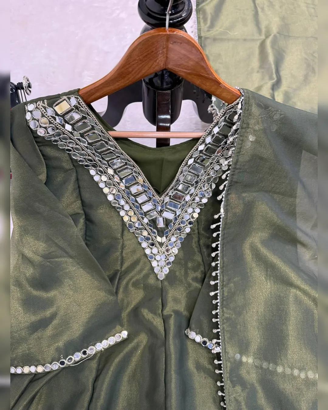 Introducing our Latest Premium Cosmos Top–Plazo–Dupatta Set, crafted to bring elegance, comfort, and festive charm in one stunning outfit. The set features Real Mirror Work with Thread Embroidery, luxurious Cosmos fabric, and rich flair—making it perfect for parties, festive events, and special occasions.
