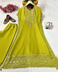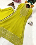 Enhance the beauty of your wardrobe with this newly launched faux georgette kaftan–pant set, designed for effortless elegance and all-day comfort. Crafted from premium faux georgette, the kaftan features beautiful 5mm sequins and zari embroidery work that adds a subtle festive sparkle. Paired with a fully stitched matching pant, this ready-to-wear ensemble is perfect for parties, festive gatherings, and special occasions where style meets comfort.