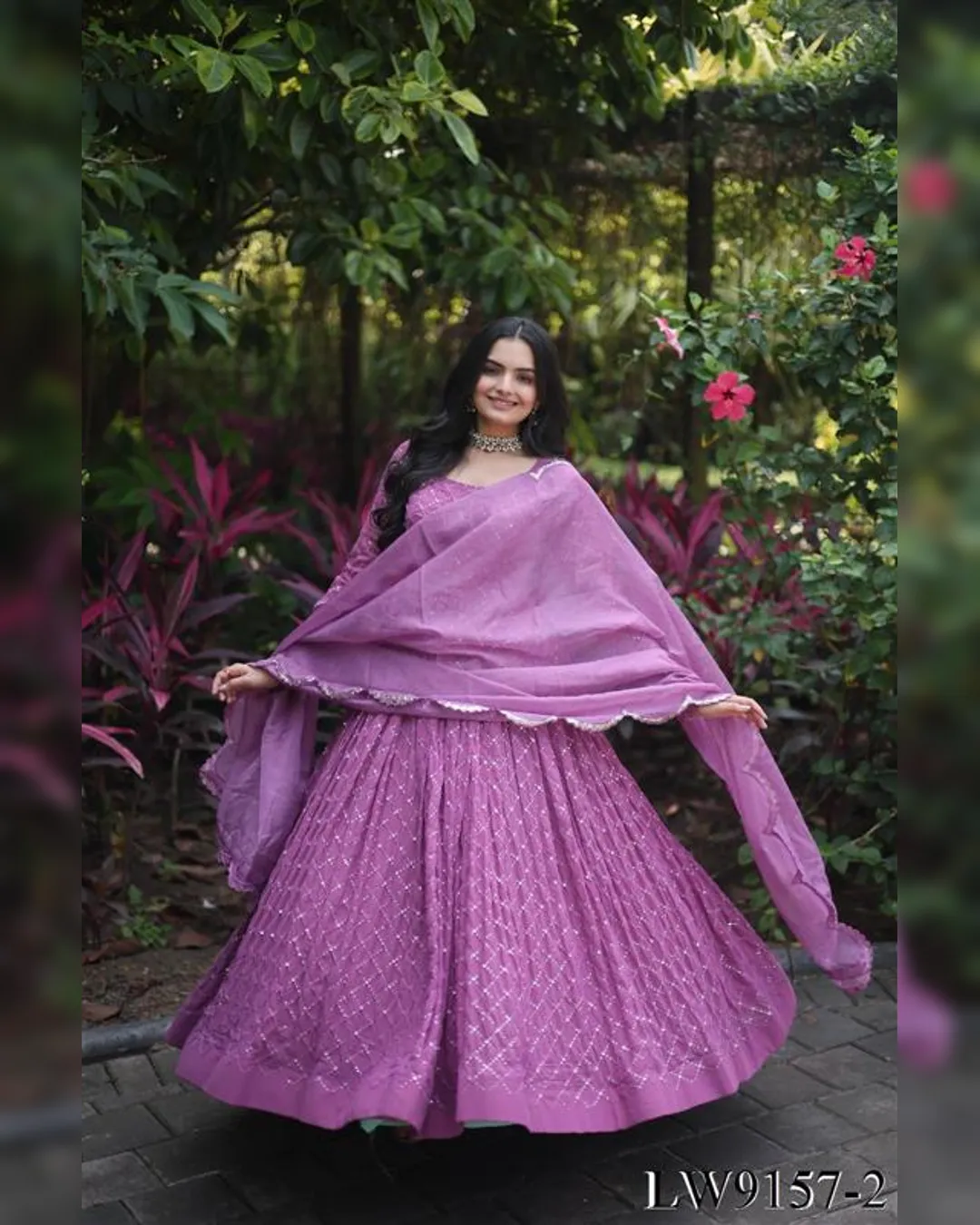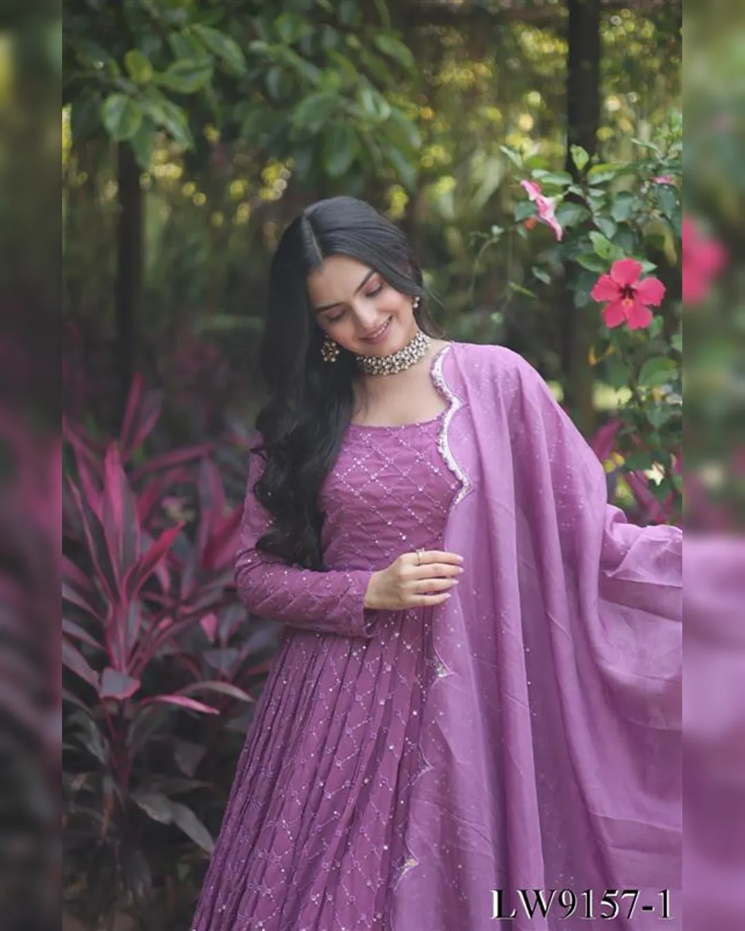 Completing the ensemble is a Russian Silk Dupatta, adding an extra layer of elegance with sequin border work and measuring 2.30 meters. Elevate your elegance with the LW9157 Premium Faux Georgette Gown, a must-have for any special occasion. ✨