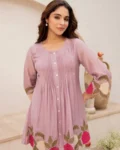 The set includes a stylish top paired with matching pants, creating a coordinated and fashionable ethnic ensemble. The soft cotton lining ensures comfort while maintaining the premium feel of the fabric.