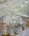 Step into elegance with this stunning designer organza saree, crafted to bring out timeless beauty and modern glamour. The saree features delicate thread zaal work enhanced with sparkling Siroski embellishments, creating a luxurious and graceful look. The original mirror work adds a captivating shine, while the silver zari border gives the saree a refined traditional finish.