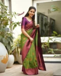 Soft Lichi Silk Saree with rich pallu and intricate jacquard work, paired with an exclusive jacquard border blouse – a timeless traditional ensemble.