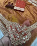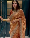 The saree is beautifully adorned with intricate sequins and dori embroidery work, adding sparkle and detailed craftsmanship throughout the drape. Its handcrafted embellishments enhance the overall look, making it a perfect choice for women who love sophisticated and stylish ethnic wear.