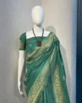 The highlight of this saree is its rich zari woven pallu, making it a perfect pick for festive occasions, weddings, and celebrations. Paired with a matching pure weaving blouse, this ensemble offers a complete traditional look infused with timeless grace.