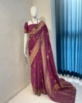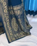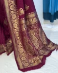 Pure Banarasi chiffon georgette saree with all-over self-weaving design and zari weaving rich pallu. Comes with a soft matching weaving blouse.