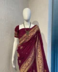 Elevate your ethnic wardrobe with our newly launched Pure Banarasi Chiffon Georgette Saree, crafted with finesse and tradition. This soft and luxurious saree features self-weaving designs all over the body, adding subtle elegance and texture.