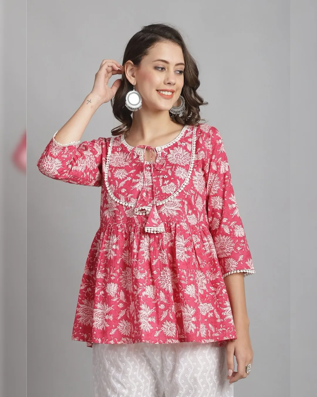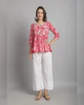 Elevate your casual style with this Slim Fit Cotton Short Kurti, designed to pair effortlessly with denim jeans or trousers. Crafted from breathable cotton and adorned with subtle thread work, this 29-inch kurti offers both comfort and elegance, making it ideal for office hours, college days, or casual outings.