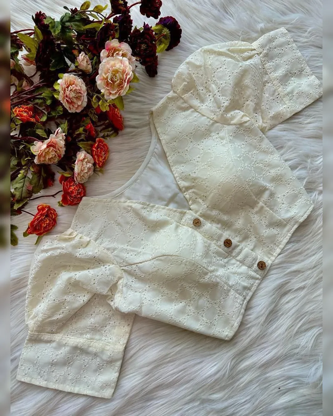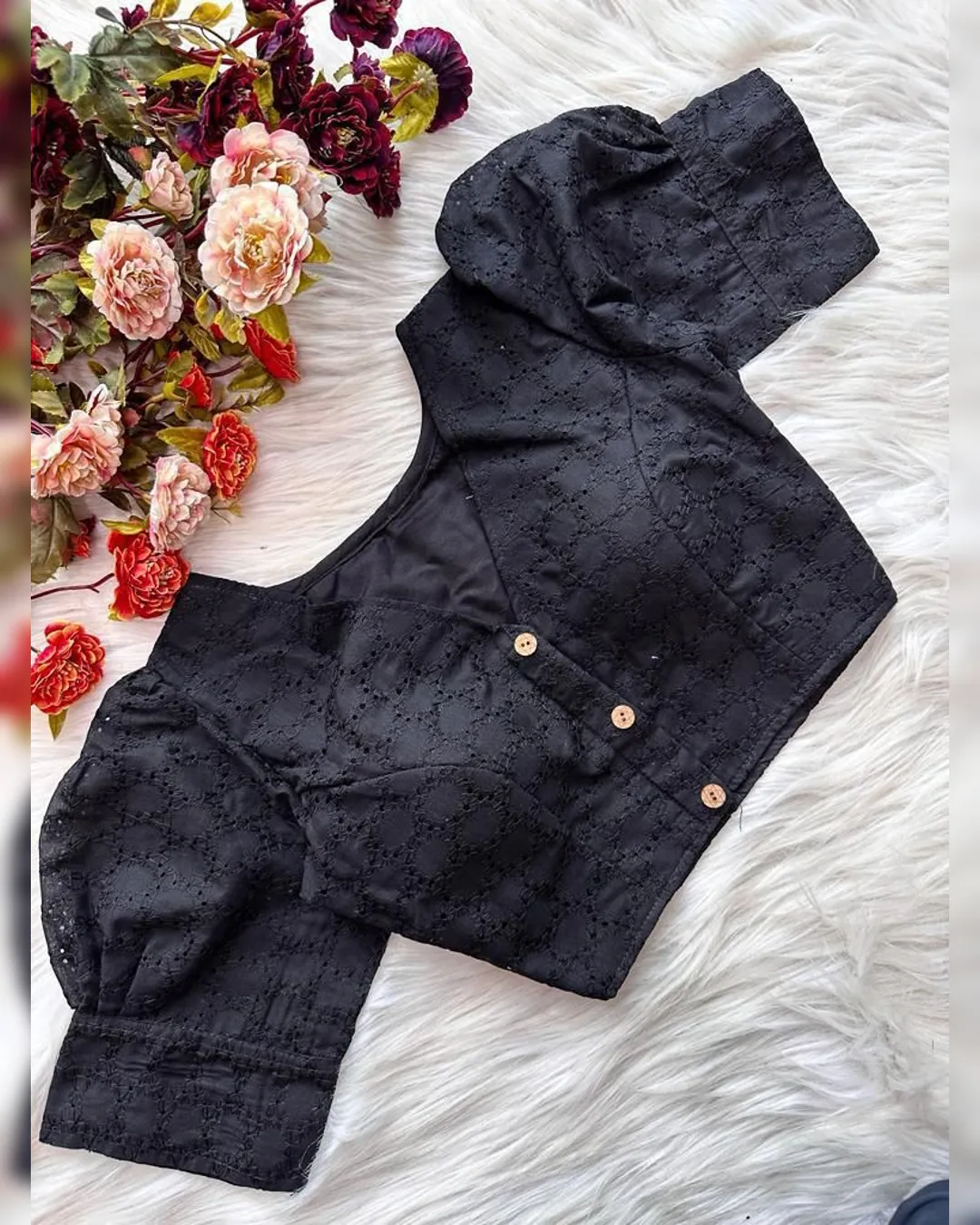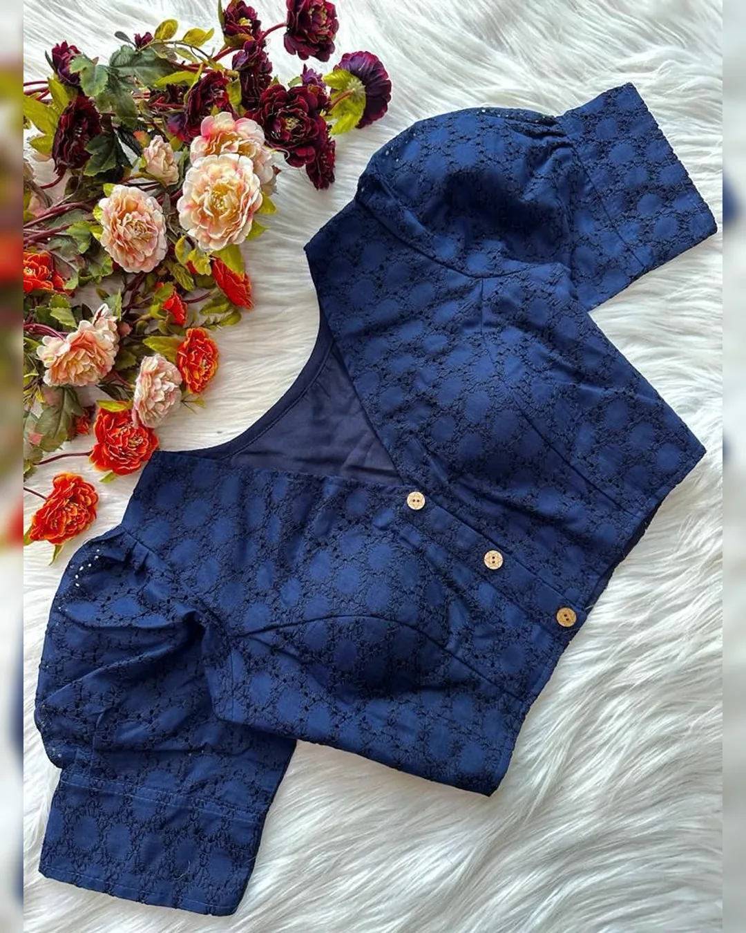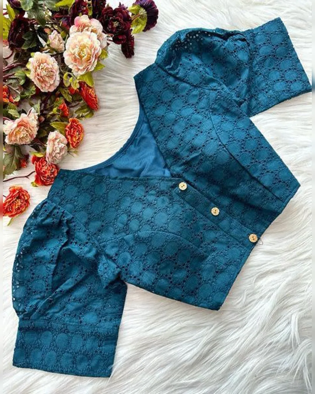 Enhance your ethnic wardrobe with this elegant Pure Cotton Hakoba Blouse, featuring a trendy football design and charming puff sleeves. Crafted with heavy stitching and padded for extra comfort, this partywear blouse is designed for both style and durability. The front-open style adds a touch of sophistication, making it an ideal choice for sarees and lehengas. Available in 14 vibrant colors, this blouse is a must-have for every fashion enthusiast.