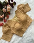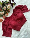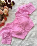 Stylish Pure Cotton Hakoba Blouse with football design, puff sleeves, heavy stitching, and padding. Features a front-open style and is available in 14 beautiful colors.
