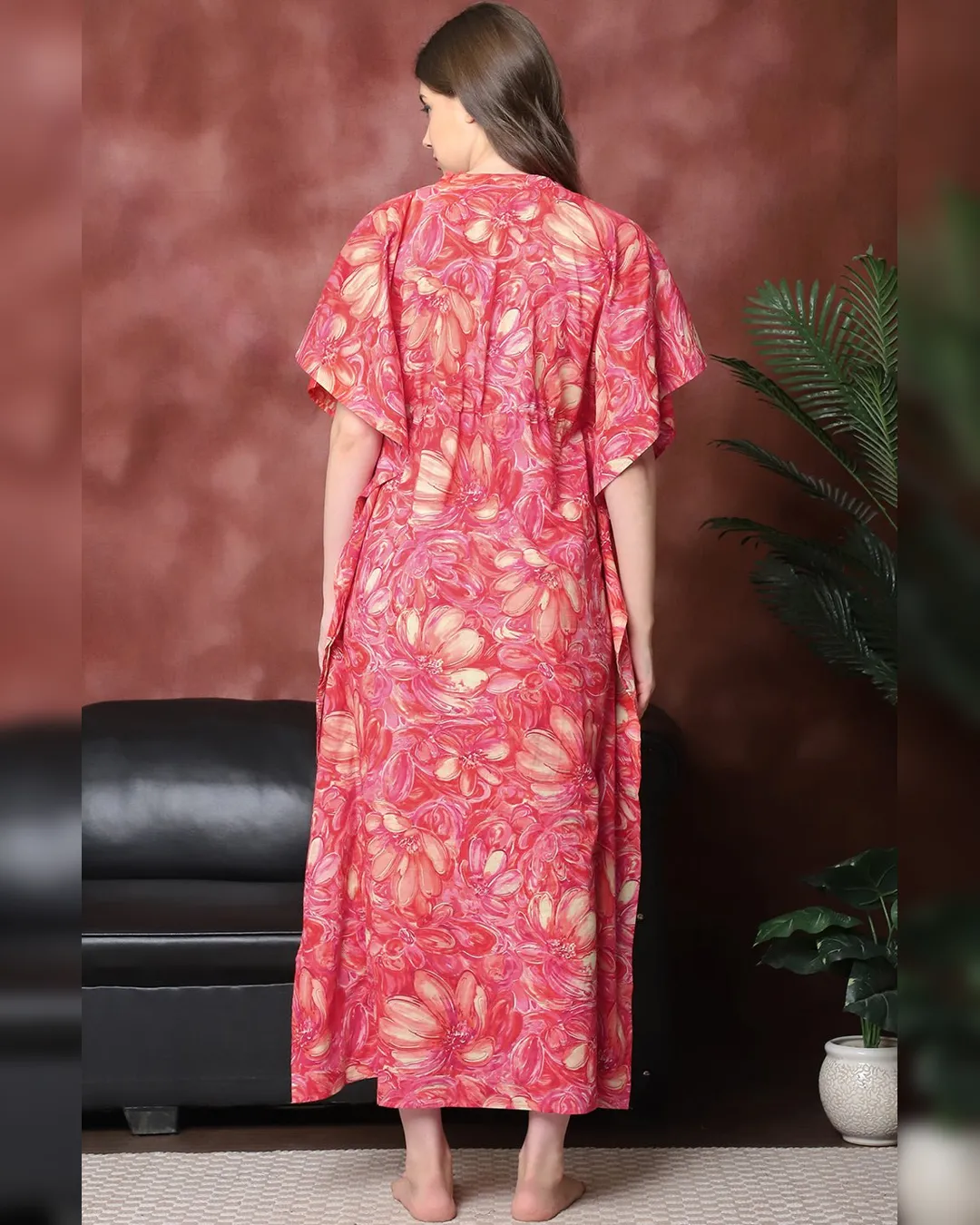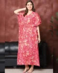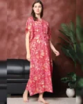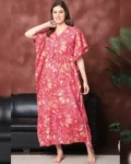 Embrace pure comfort and effortless style with this Red Floral Printed Pure Cotton Kaftan Nightdress, perfect for women who love to lounge in breathable ease. Crafted from 100% pure cotton, this kaftan feels light on the skin and allows for all-day comfort. The floral print lends a touch of charm, while the V-neckline, short sleeves, and relaxed maxi fit make it an ideal choice for laid-back evenings or peaceful sleep. A must-have piece in every woman’s nightwear collection.