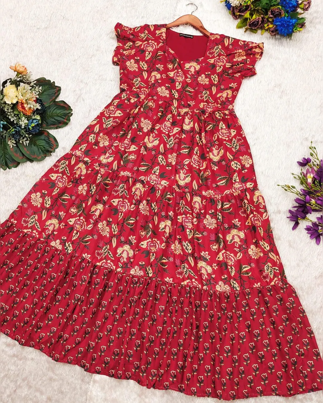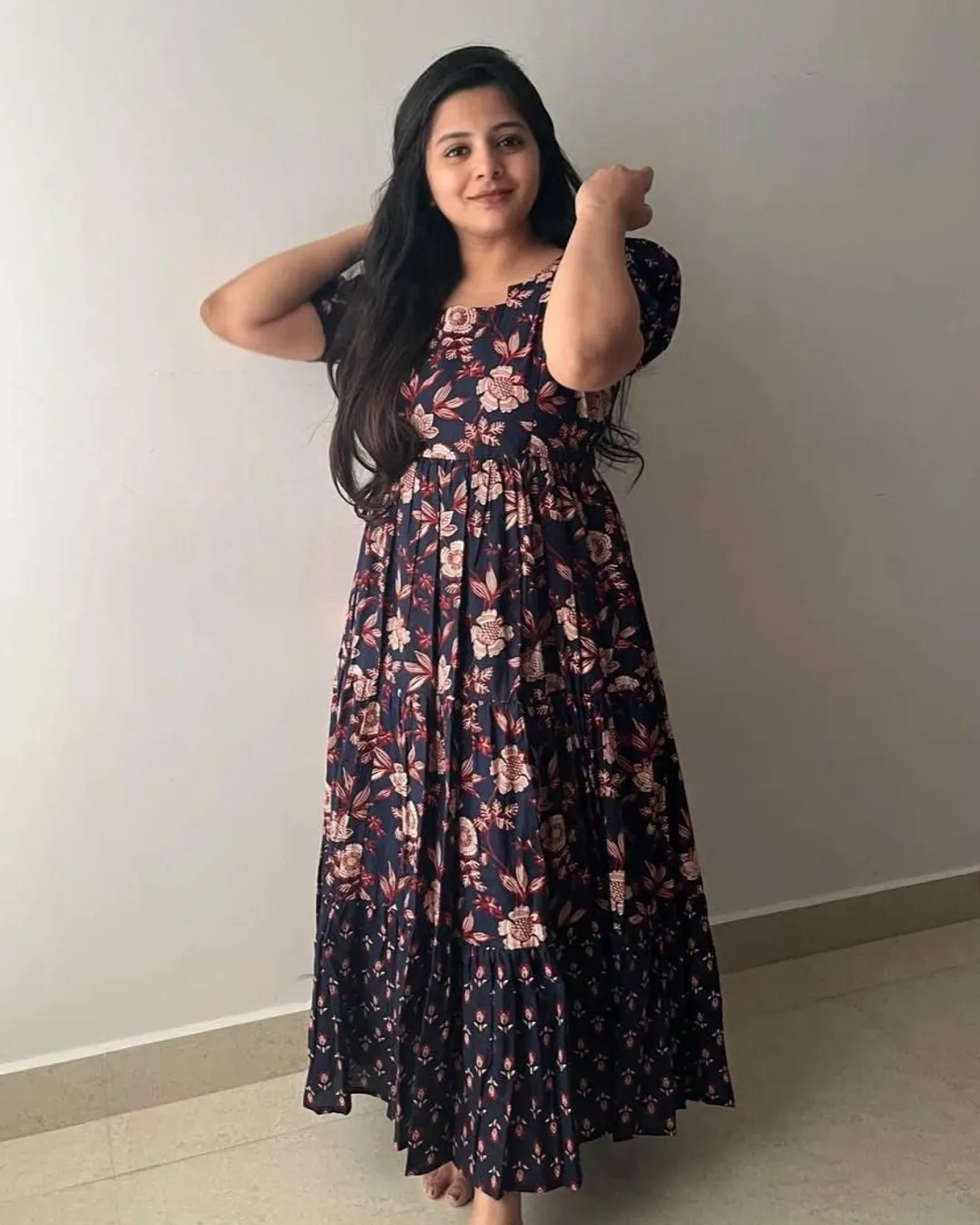 Perfect for celebrations or casual elegance, this beautifully designed maxi dress is crafted from premium soft cotton with a breathable lining for all-day comfort. Featuring a charming floral print, a flattering silhouette, and short sleeves, this 50-inch-long maxi is your go-to outfit for twirling into every occasion with grace and style.